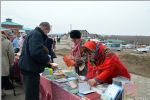 Наши пекари приготовили пирожки с изюмом и повидлом, а работники социального отдела подали горячий чай из расписного самовара, поделились конфетами и пряниками.