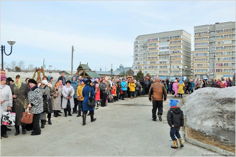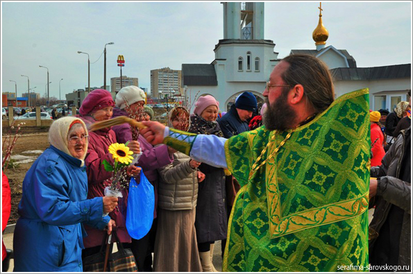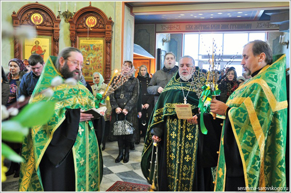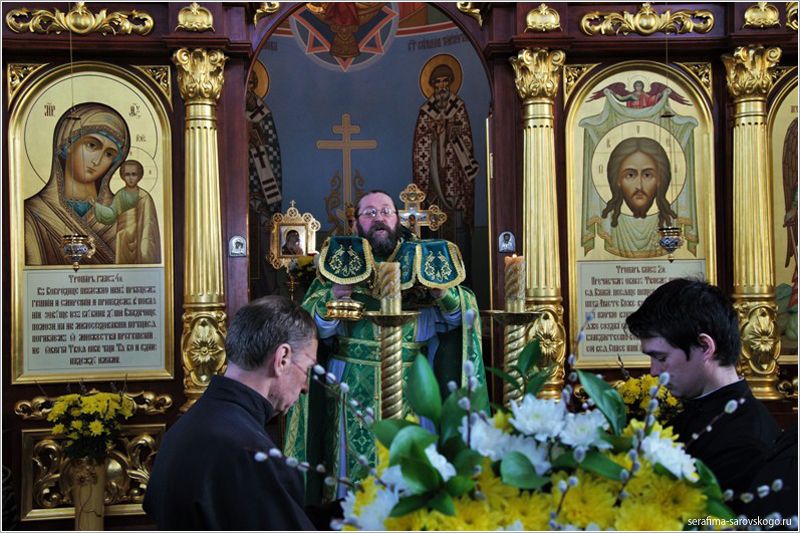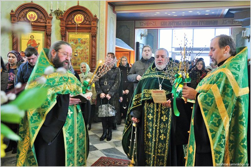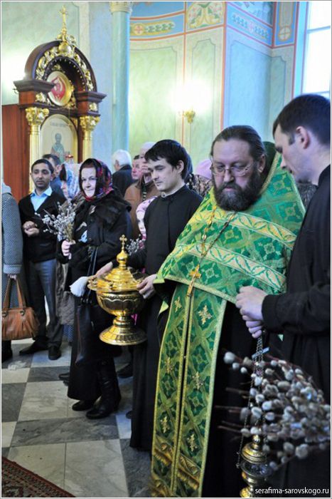 Богослужение праздника в храме преподобного Серафима Саровского состояло из Всенощного бдения накануне и Божественной литургии, сообщает сайт храма. На праздничной утрене, по традиции состоялось освящение хлебов, пшеницы, вина и елея, после чтения евангельского зачала, был совершен чин освящения ветвей вербы, в воспоминание торжественного входа Господа Иисуса Христа в Иерусалим на вольные страдания, после чего прихожане были помазаны освященным елеем.