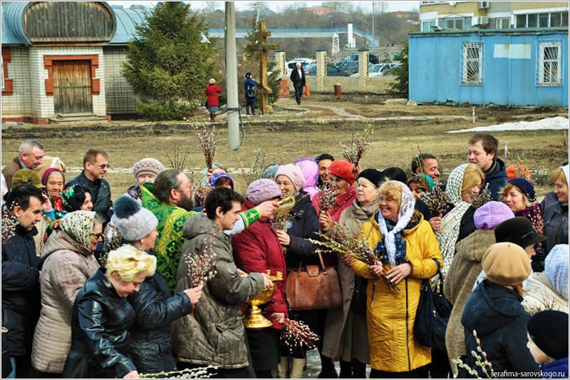 В воскресенье, в праздник Входа Господня в Иерусалим, в полном прихожан храме было совершено торжественное Богослужение. Во время совершения Литургии читался отрывок из Евангелия от Иоанна о том, как Христос, сидя на молодом осле, въехал в Иерусалим и был торжественно встречен жителями города. Они ликовали, восклицая: «Осанна в вышних! Благословен Грядущий во имя Господне!» и устилали дорогу Господу одеждой и пальмовыми ветвями. Это царское шествие Христа, добровольно вступающего на путь крестных страданий, стало началом многих последующих событий, завершившихся Его славным Воскресением. И мы также приветствуем Христа, победившего тление греха и смерти, держа в руках освященные ветви распустившейся вербы.