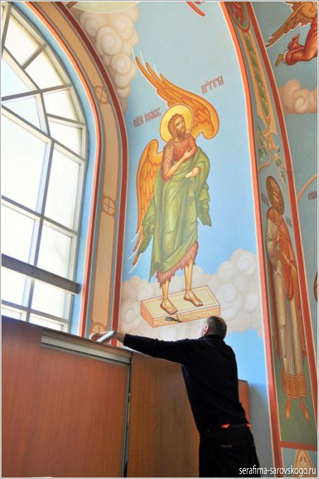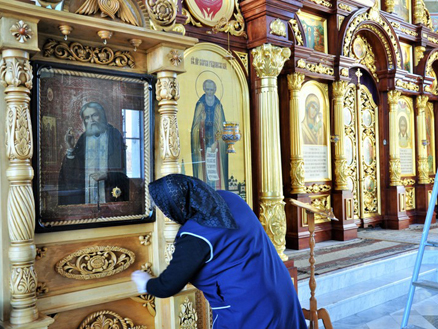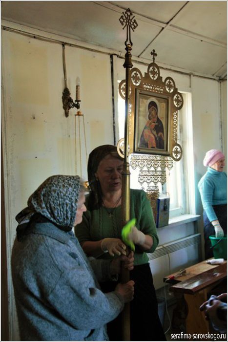 Мужчины, взяв на себя сложные обязанности, в основном связанные с работами на высоте, женщинам поручили привести в порядок иконы и подсвечники. Интересно было наблюдать с какой любовью и благоговением наши прихожанки протирали иконы, чистили подсвечники, отмывали стены от копоти.