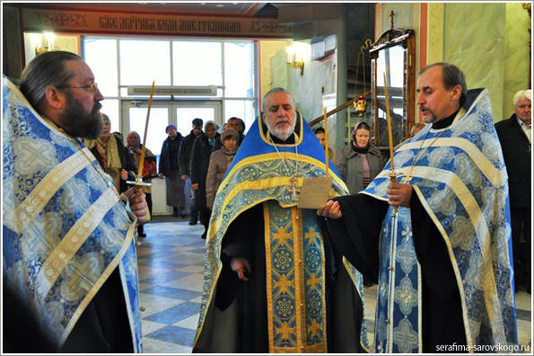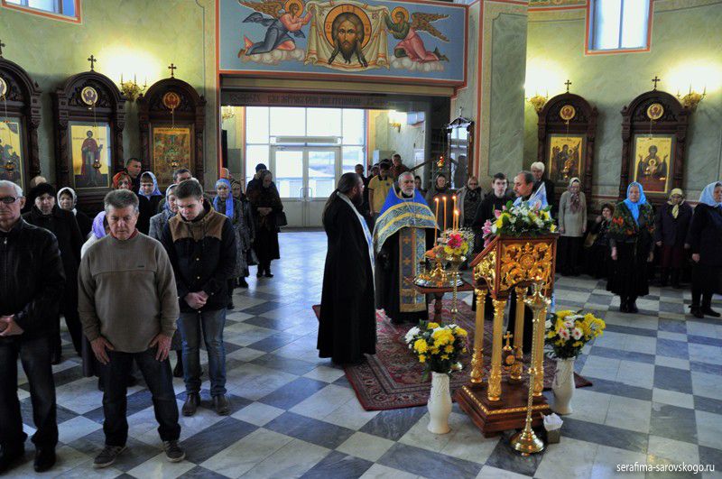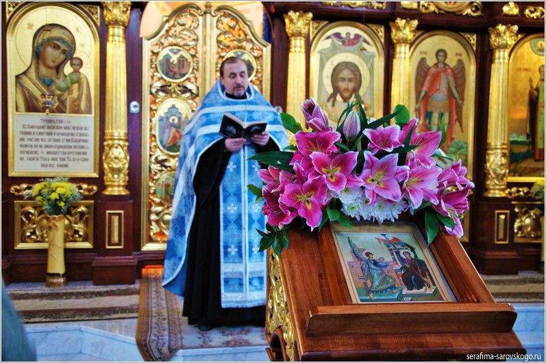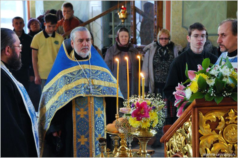 7 апреля 2015 г. в храме преподобного Серафима Саровского состоялись праздничные богослужения в честь двунадесятого праздника Благовещения Пресвятой Богородицы. Вечером накануне было отслужено Всенощное бдение, а утром – часы, изобразительны, вечерня и литургия св.Иоанна Златоуста. В голубых облачениях служили все священники — настоятель храма протоиерей Михаил Гречко в сослужении клириков: протоиерея Виталия Стахеева, иерея Владимира Забалуева, сообщает сайт храма.