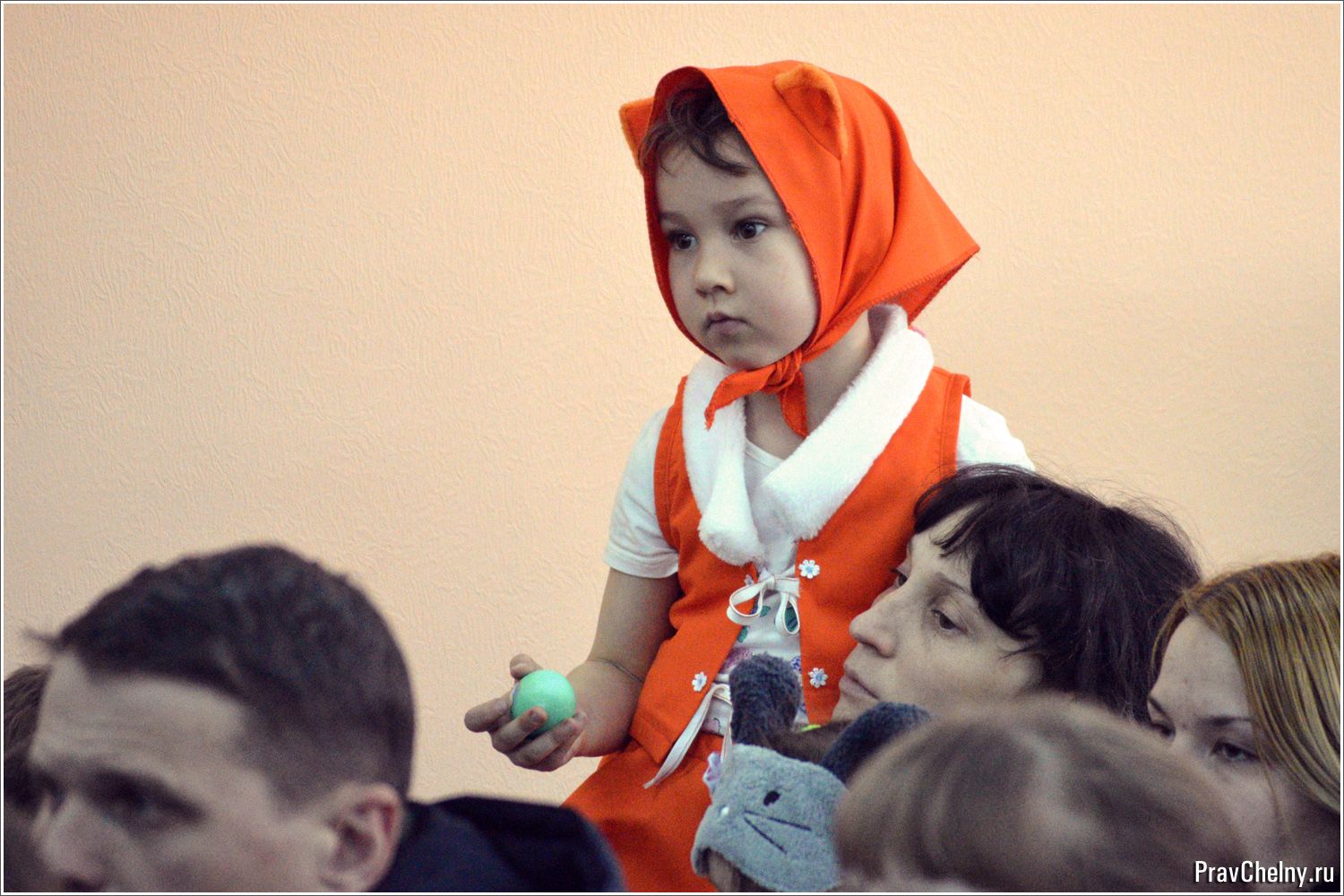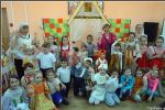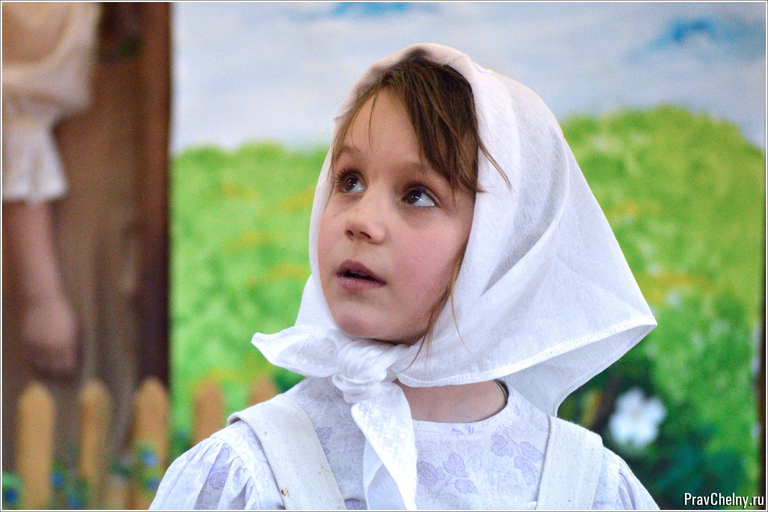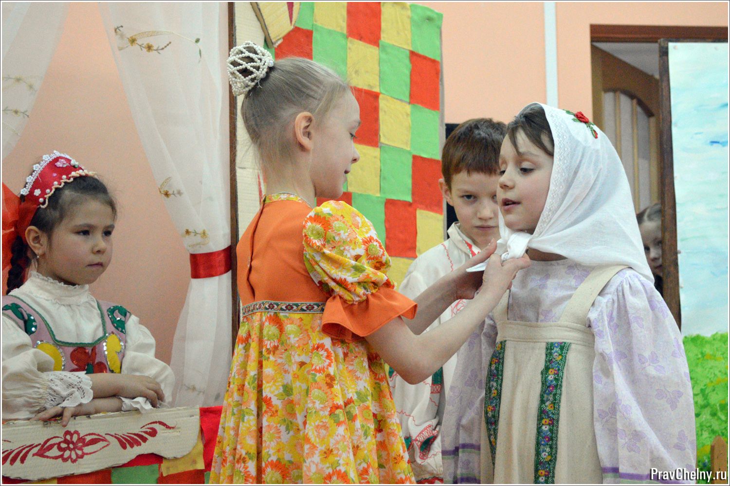 В продолжение пасхальной радости учащимися 7-8 лет группы «Буки» был показан спектакль «Гуси-лебеди». Ребята порадовали зрителей всем знакомой русской народной сказкой про Алёнушку и братца Иванушку. Алёнушка, не послушав наказа родителей, по нерадению, заигравшись с подружками, оставила братца, которого унесли гуси-лебеди.