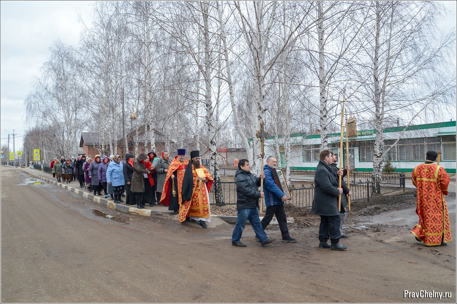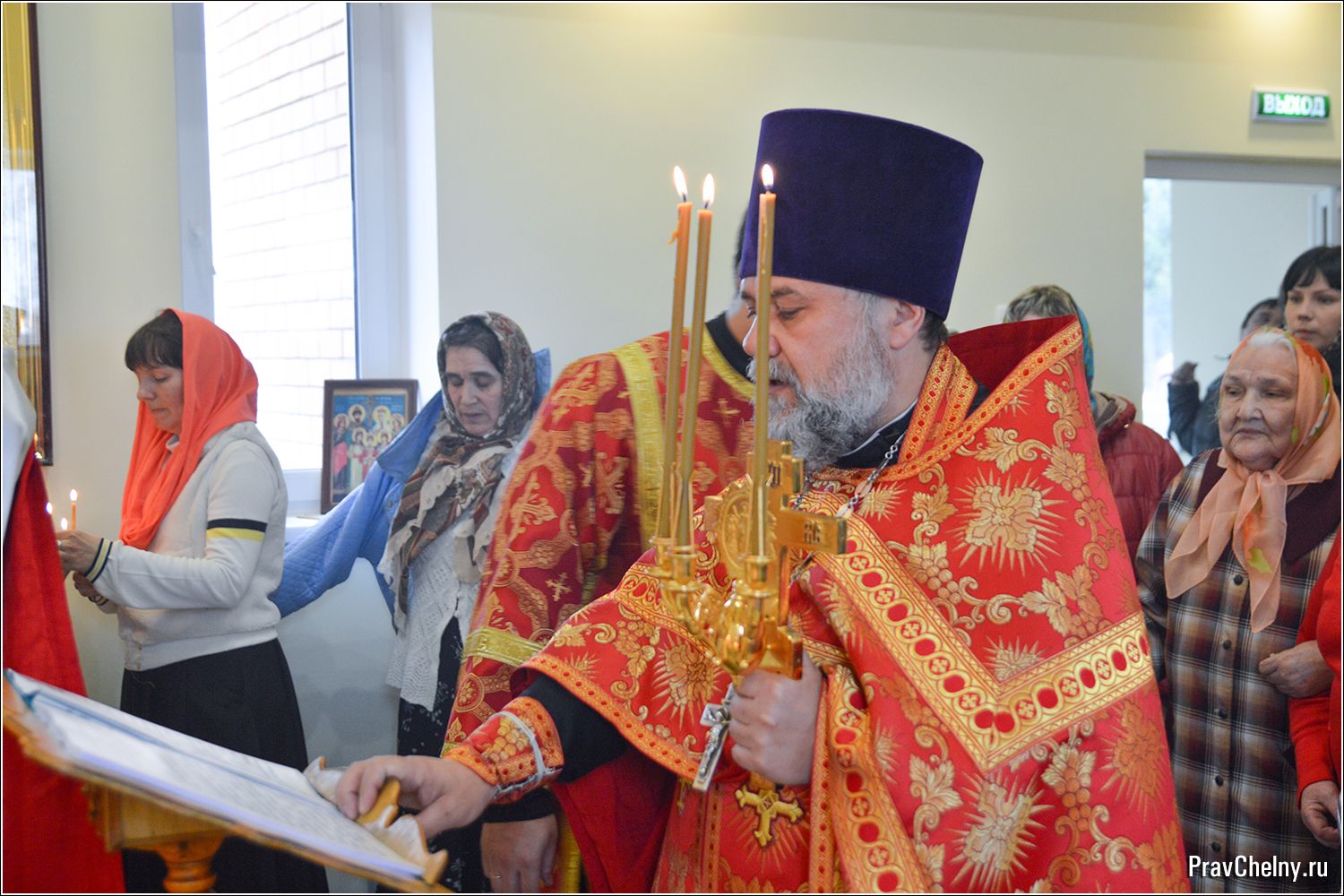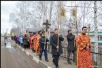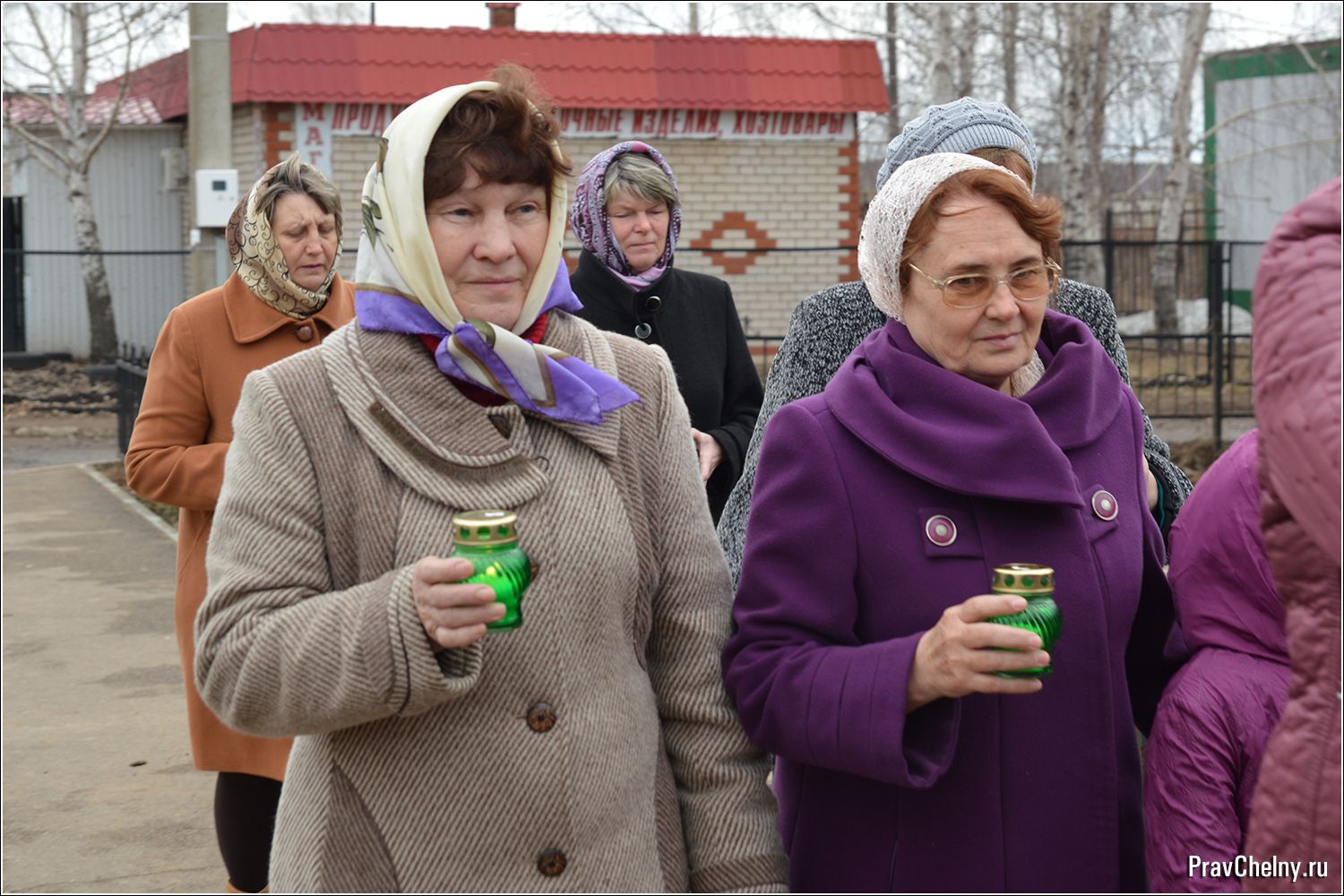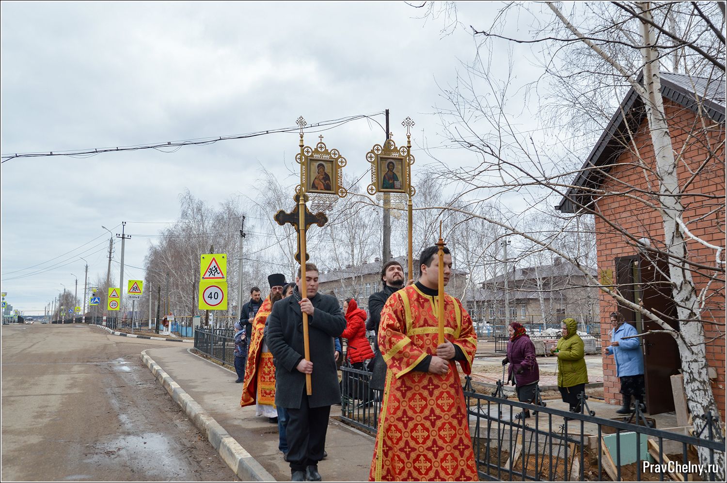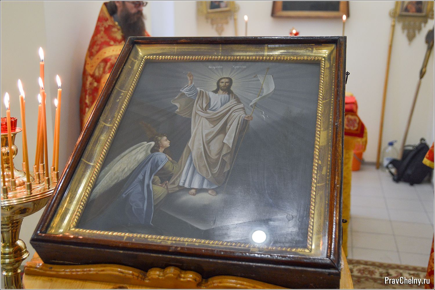 Служение Пасхального молебна возглавил протоиерей Андрей Дубровин. Во время пения молебна клирики хор и прихожане прошли крестным ходом вокруг территории храма-часовни и места строительства будущего капитального храма в честь Смоленской иконы Божией Матери. По окончании богослужения благочинный Закамья поздравил всех с праздником и первой пасхальной службой в новом храме.