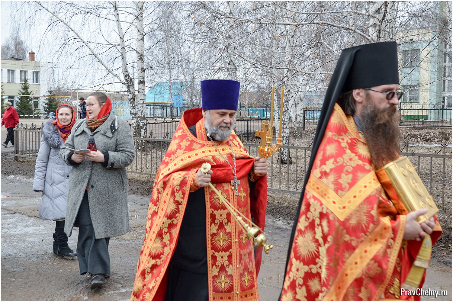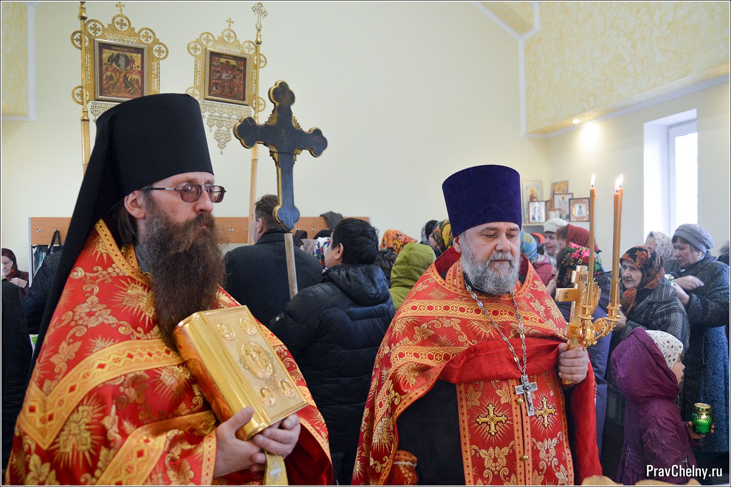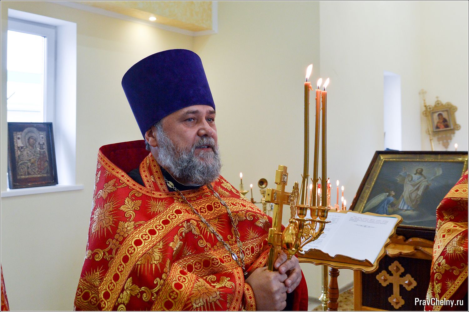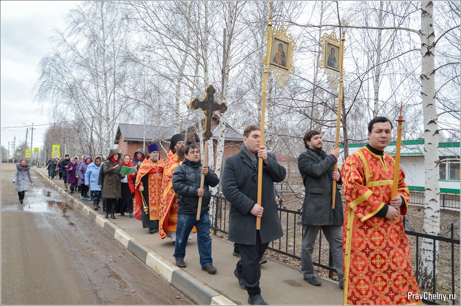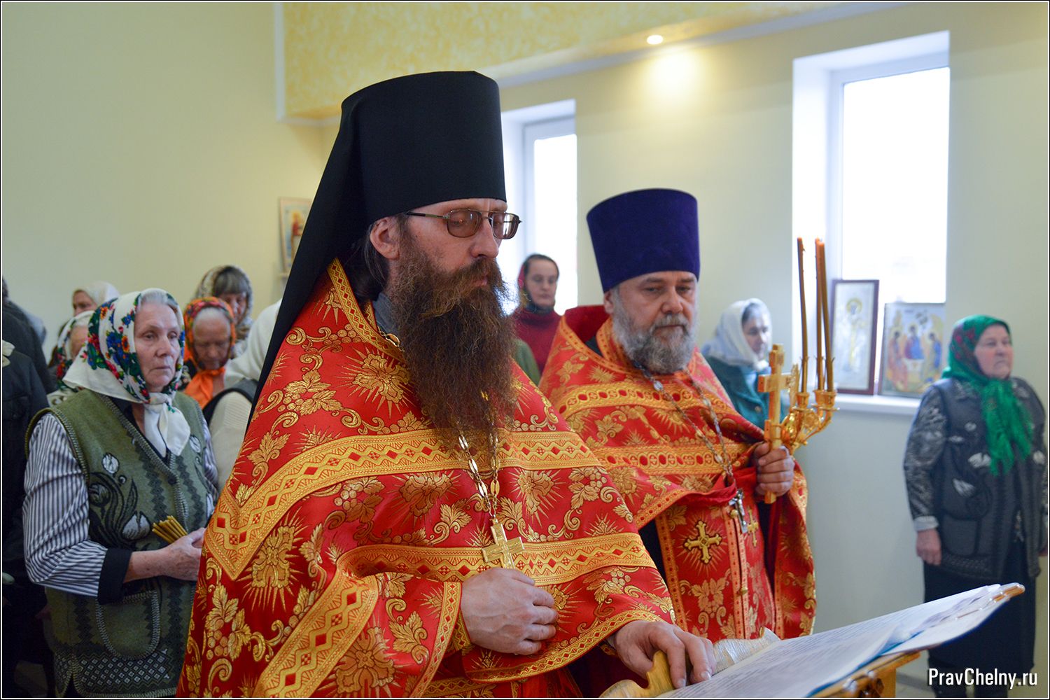 Служение Пасхального молебна возглавил протоиерей Андрей Дубровин. Во время пения молебна клирики хор и прихожане прошли крестным ходом вокруг территории храма-часовни и места строительства будущего капитального храма в честь Смоленской иконы Божией Матери. По окончании богослужения благочинный Закамья поздравил всех с праздником и первой пасхальной службой в новом храме.