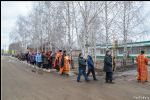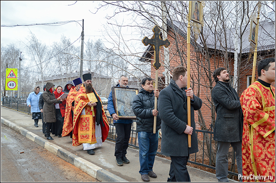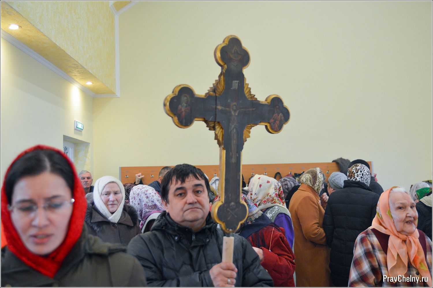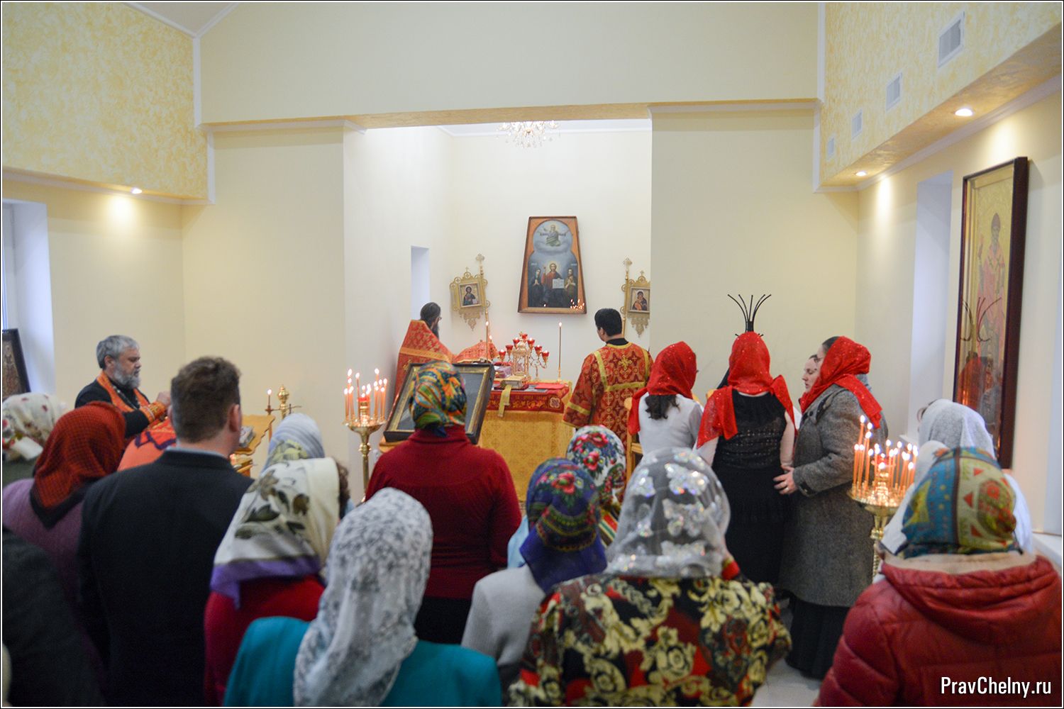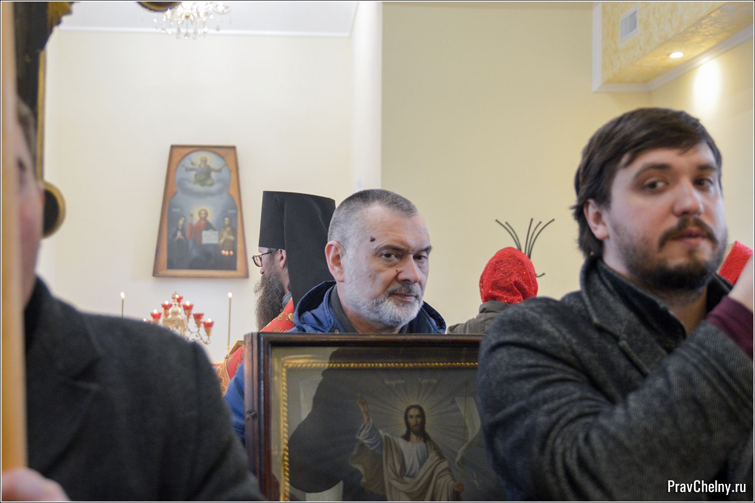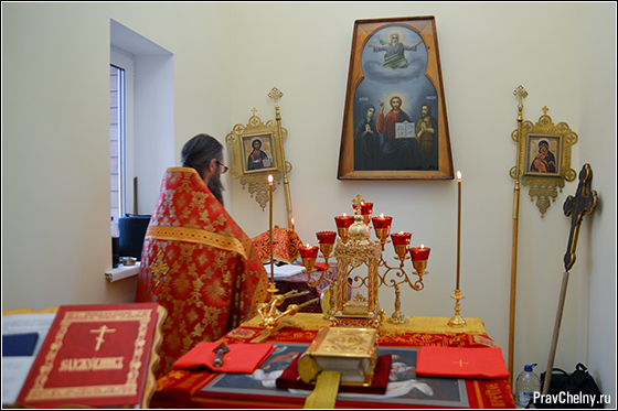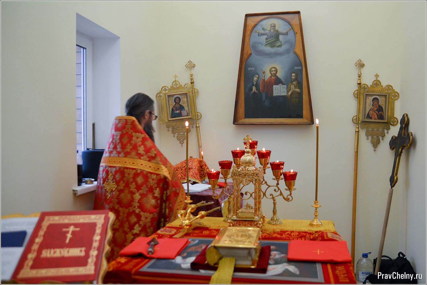Служение Пасхального молебна возглавил протоиерей Андрей Дубровин. Во время пения молебна клирики хор и прихожане прошли крестным ходом вокруг территории храма-часовни и места строительства будущего капитального храма в честь Смоленской иконы Божией Матери. По окончании богослужения благочинный Закамья поздравил всех с праздником и первой пасхальной службой в новом храме.