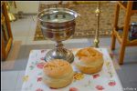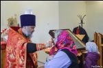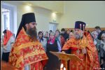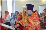 Богослужение прошло на одном дыхании, и было по пасхальному радостным, чему способствовало еще и то, что в новом храме пока нет иконостаса, и это позволяет увидеть весь ход службы от начала и до конца. В эти пасхальные дни в храмах открывают все врата, но в храме святителя Спиридона открыт весь алтарь. По окончании Литургии иеромонах Иннокентий освятил артос и принесенную в храм пасхальную снедь: куличи, яйца, пасхи.