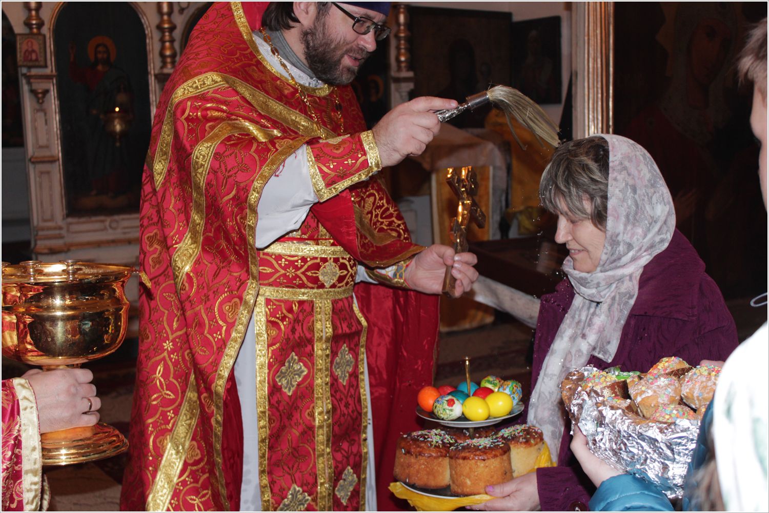 На богослужении было прочитано пасхальное поздравление Патриарха Московского и всея Руси Кирилла. По древней традиции, на Литургии Евангелие было прочитано на разных языках: на церковно-славянском и греческом.