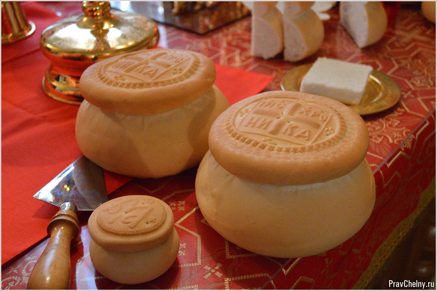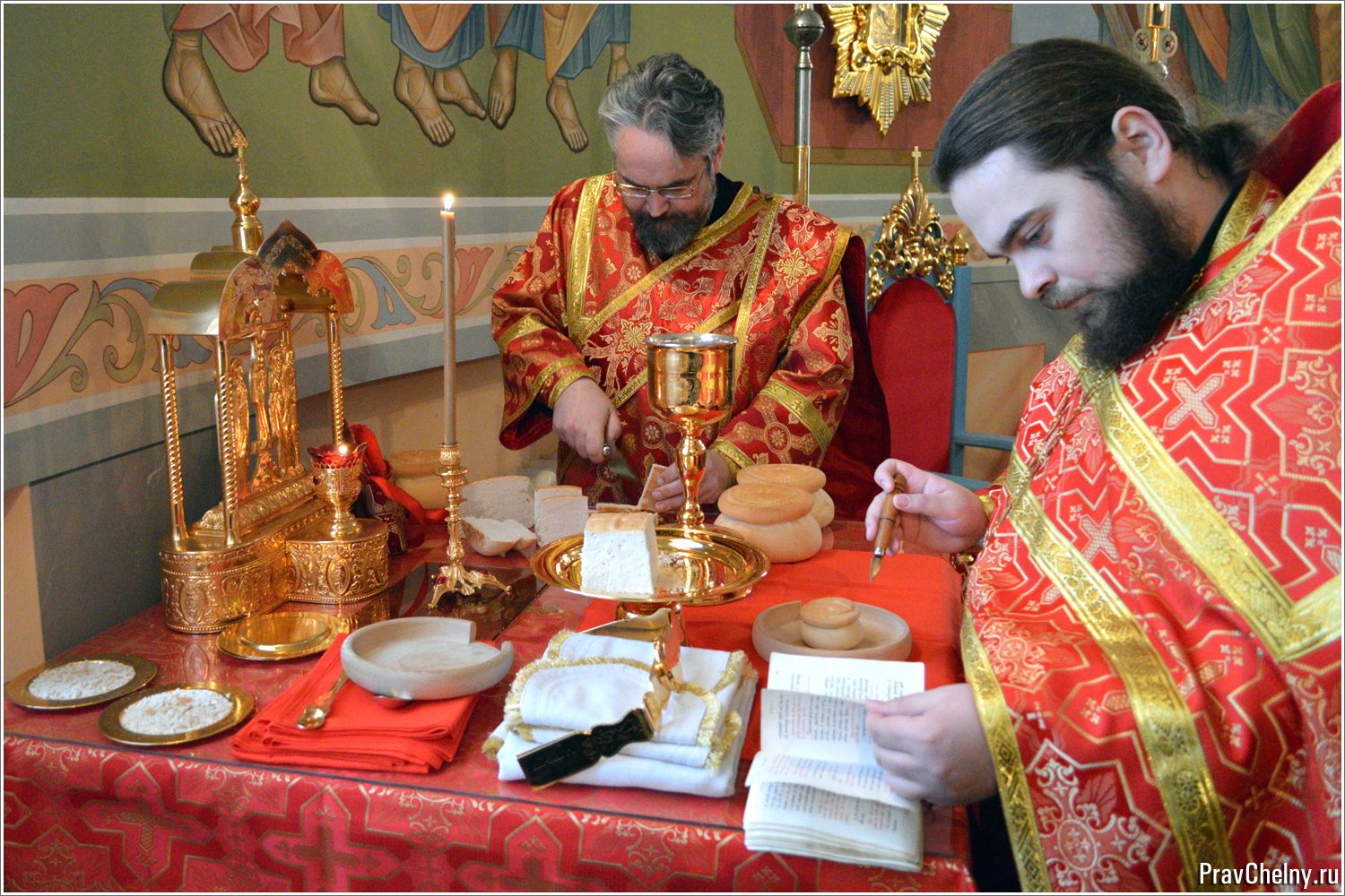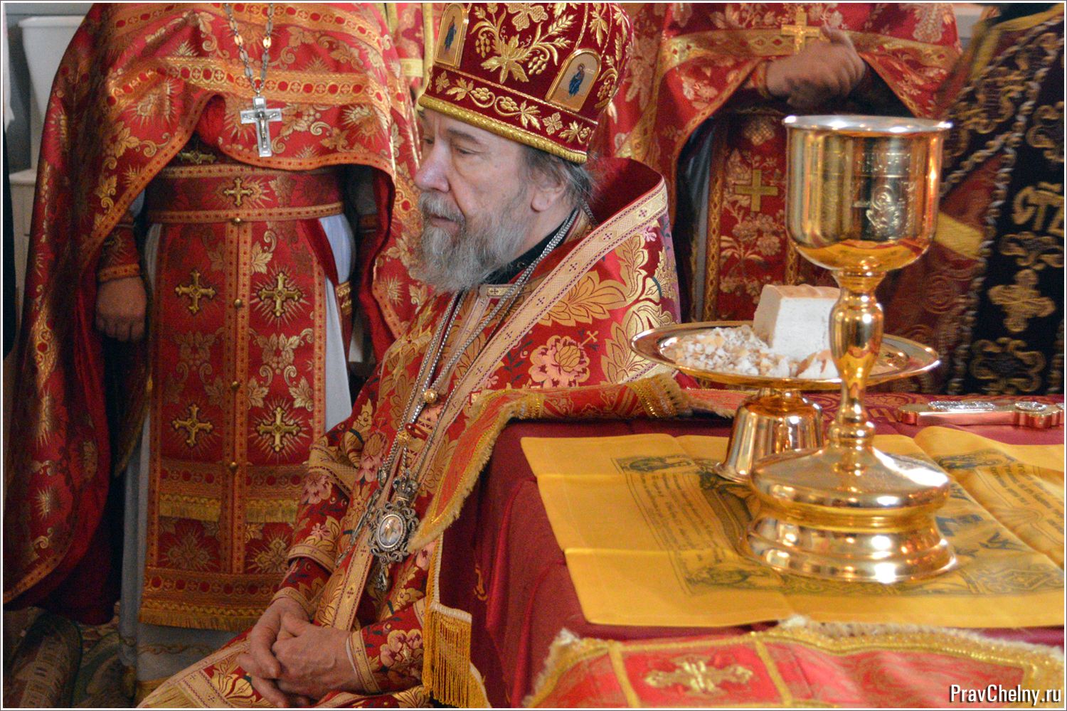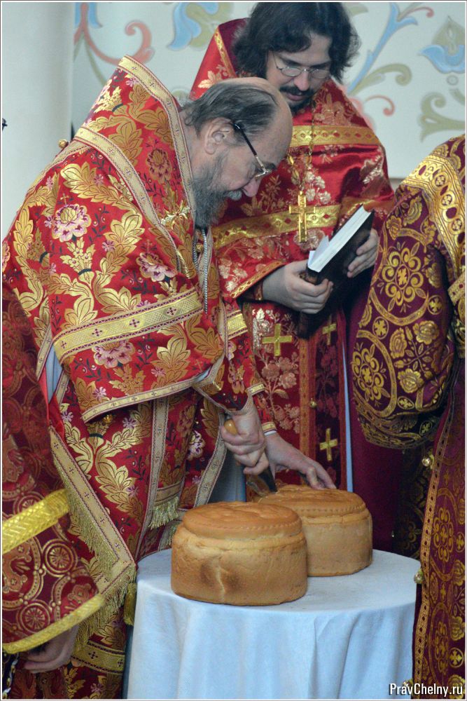 После богослужения архиерей прочитал молитву и совершил дробление артоса, заметив, что нельзя путать вкушение артоса с принятием Тела Христова: