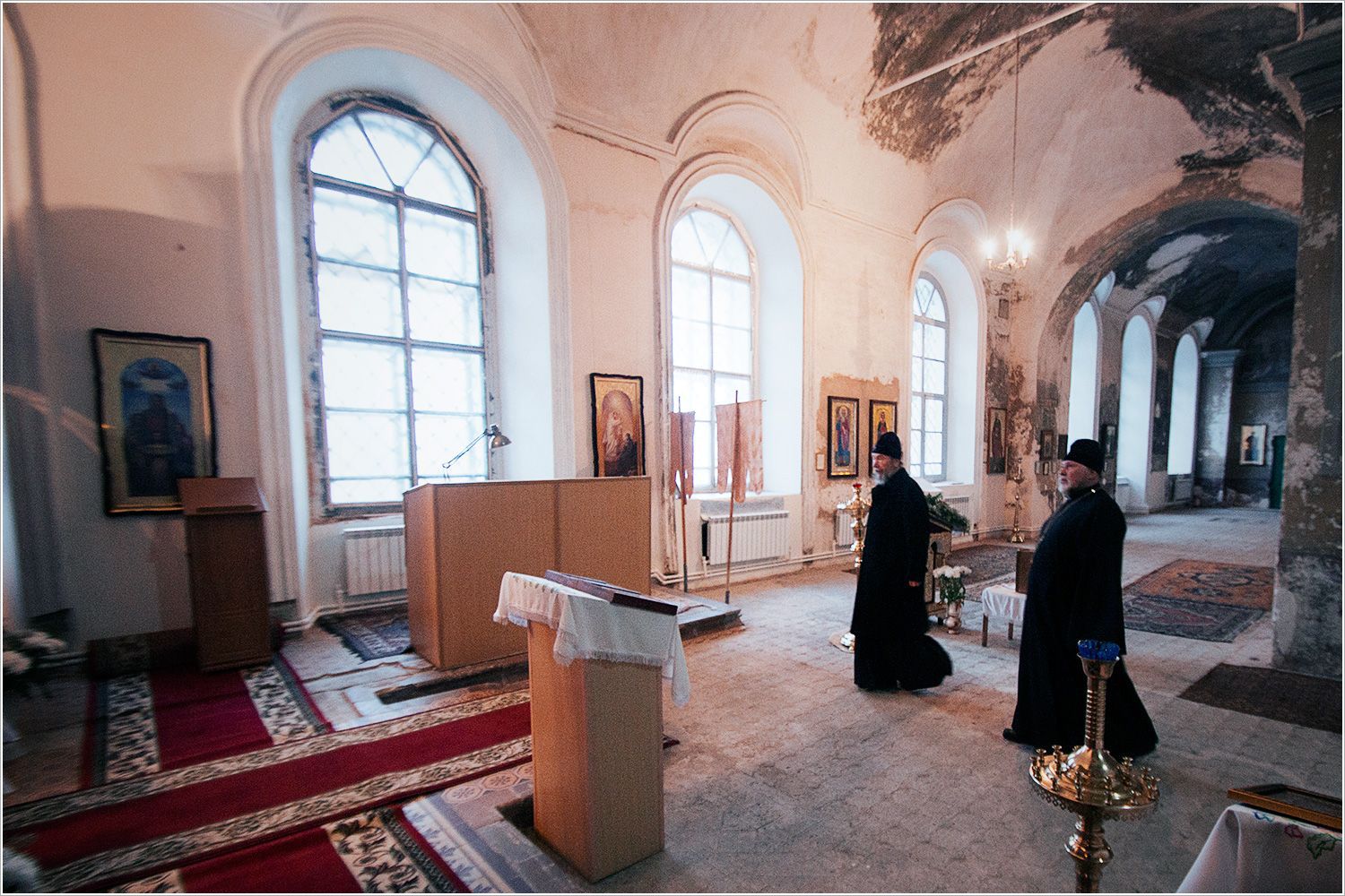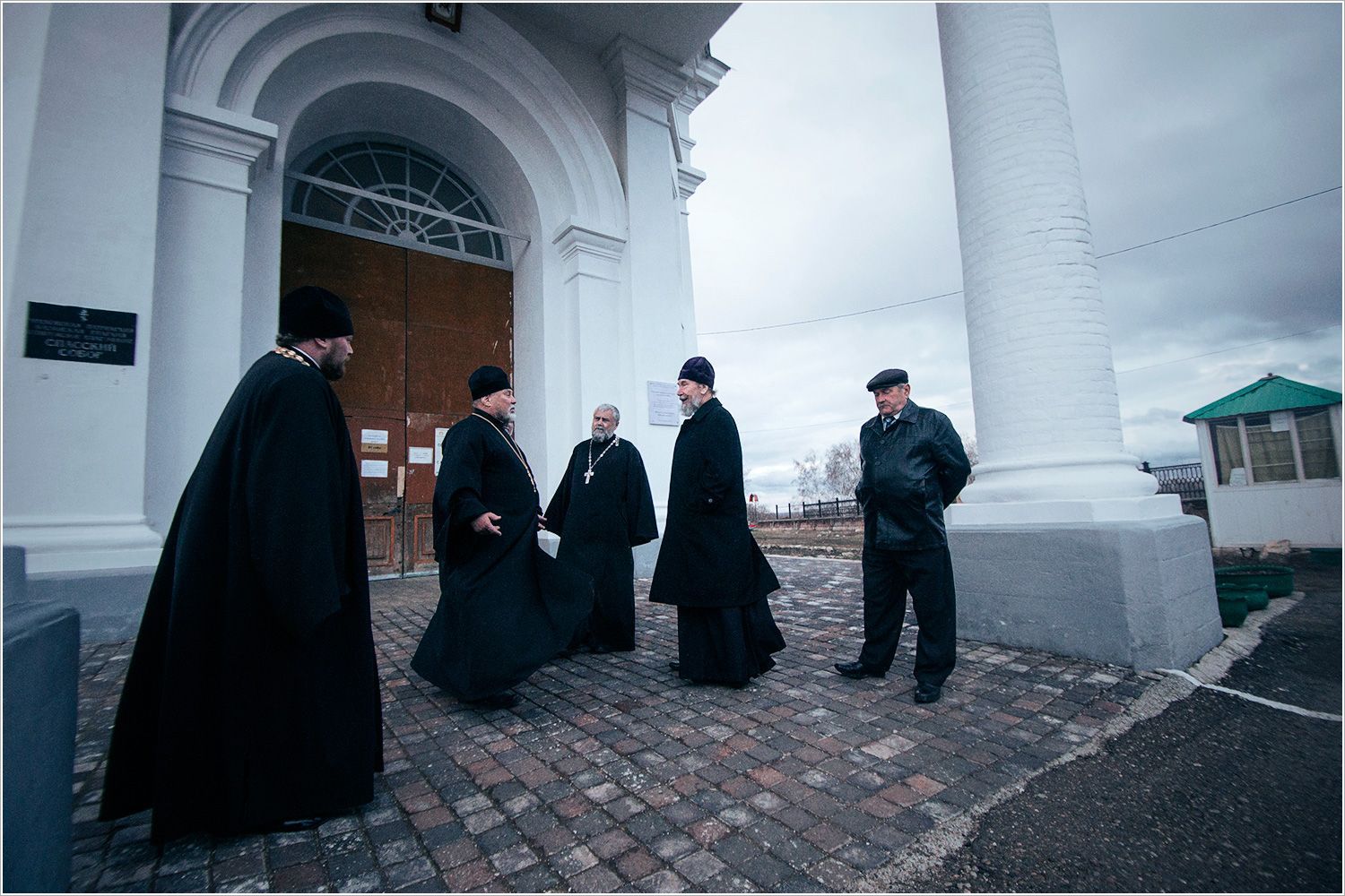 В этот же день после вечернего богослужения в Покровском соборе г. Елабуги владыка ознакомился с ходом реставрационных работ в Спасском соборе города.