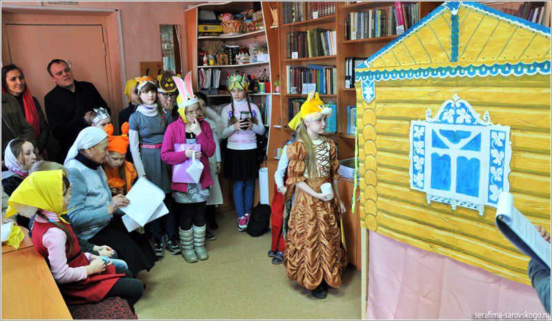Сразу по окончании пасхальной Литургии ученики воскресной школы собрались в классе, где их уже с нетерпением ожидали зрители. Воспитанники школы подготовили Пасхальное представление для своих родителей и всех приглашенных. Ребята с усердием готовились к Светлому празднику и репетировали на протяжении всего Великого поста.