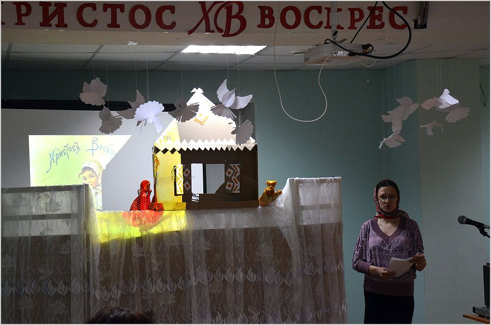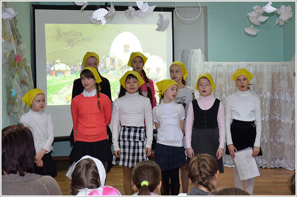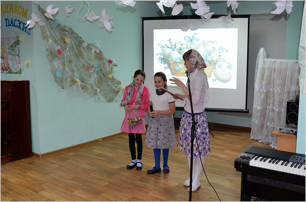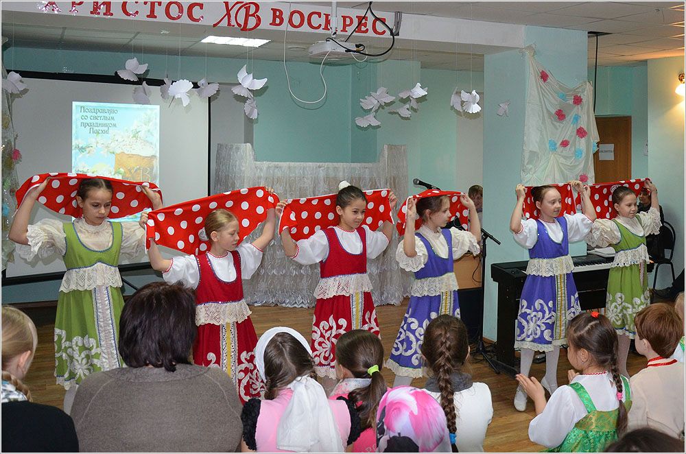 Мероприятие проходило в форме концерта, но по сложившейся уже традиции, это было театрализованное, музыкальное представление с песнями и танцами. Воспитанники детской воскресной школы «Звездочка» прихода Рождества Христова исполнили несколько своих номеров: песни «Аист на крыше», «Пасхальная». Ребята из детской воскресной школы «Зернышко» храма прп. Серафима Саровского порадовали музыкальными номерами «Святая ночь», « Чудо выше всех чудес» и стихотворением о Пасхе. Учащиеся детской воскресной школы «Орлята» при Орловском храме подготовили для гостей две песни «Журавли» и «Пасха». Интересный «подарок» был приготовлен ребятами детской воскресной школы храма вмч. Георгия Победоносца — театрализованная постановка «Теремок», где было использовано интерактивное общение. Воспитанники детской воскресной школы «Радуга» при Свято-Вознесенском Архиерейском подворье преподнесли гостям «сюрприз» в виде весёлого танца «Скоморошек».
