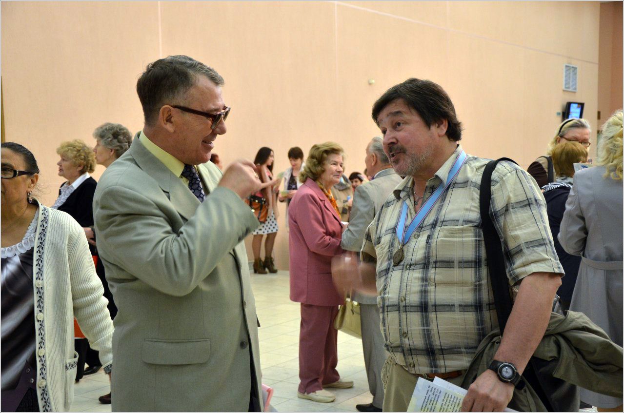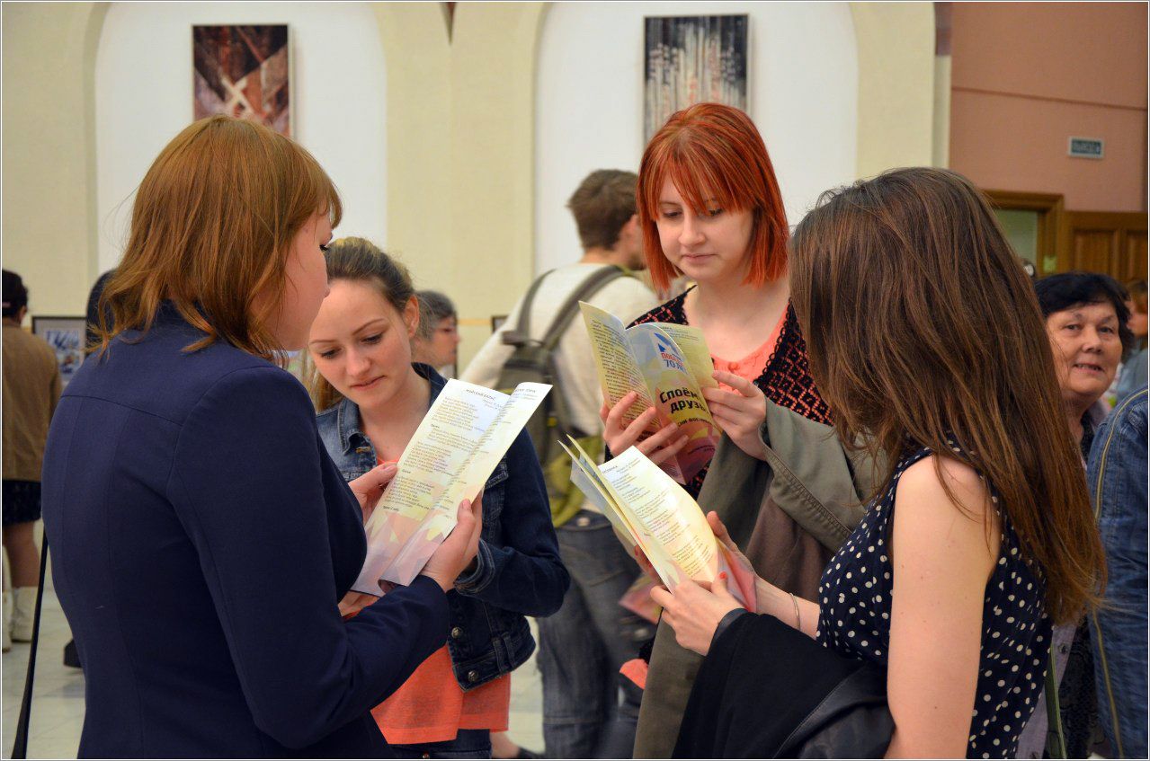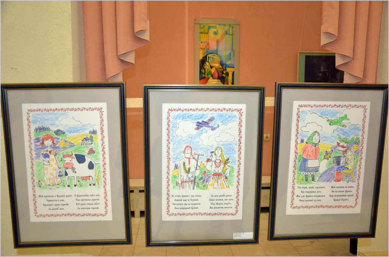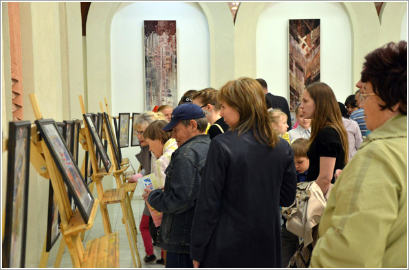 Выставка, расположившаяся в фойе зала, также была посвящена 70-летию Победы. Здесь были представлены работы действительного члена ИППО Юрия Свинина — члена Союза художников, Заслуженного деятеля искусств Республики Татарстан — и его учеников, студентов Камского института искусств и дизайна.