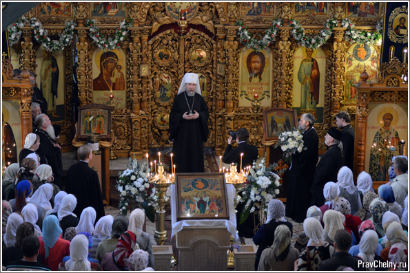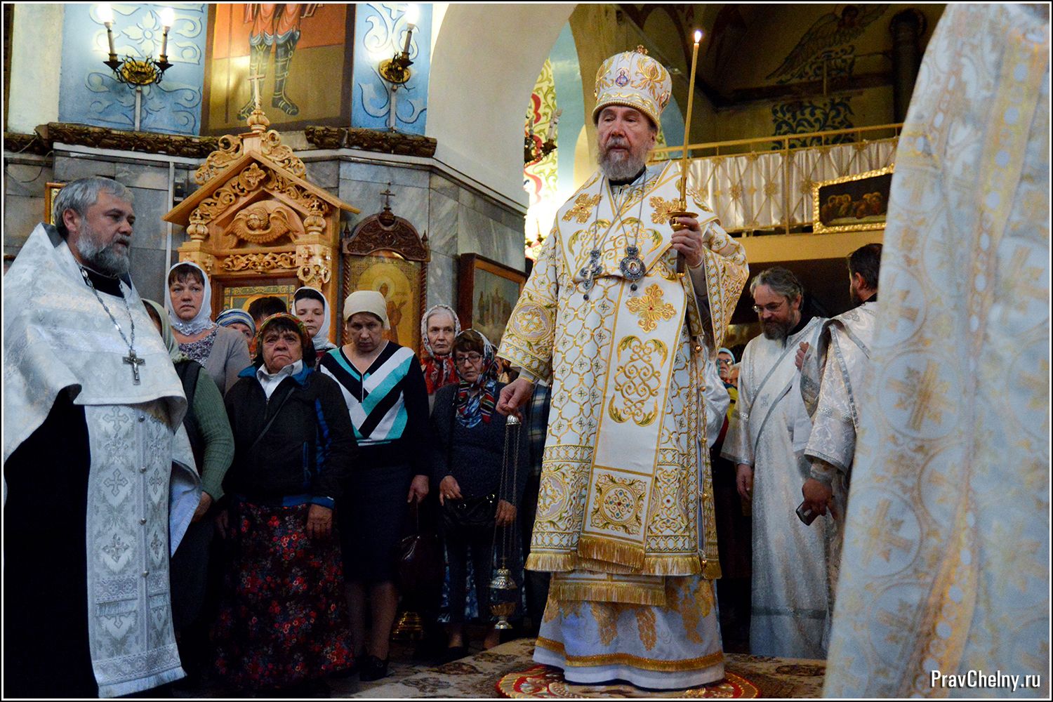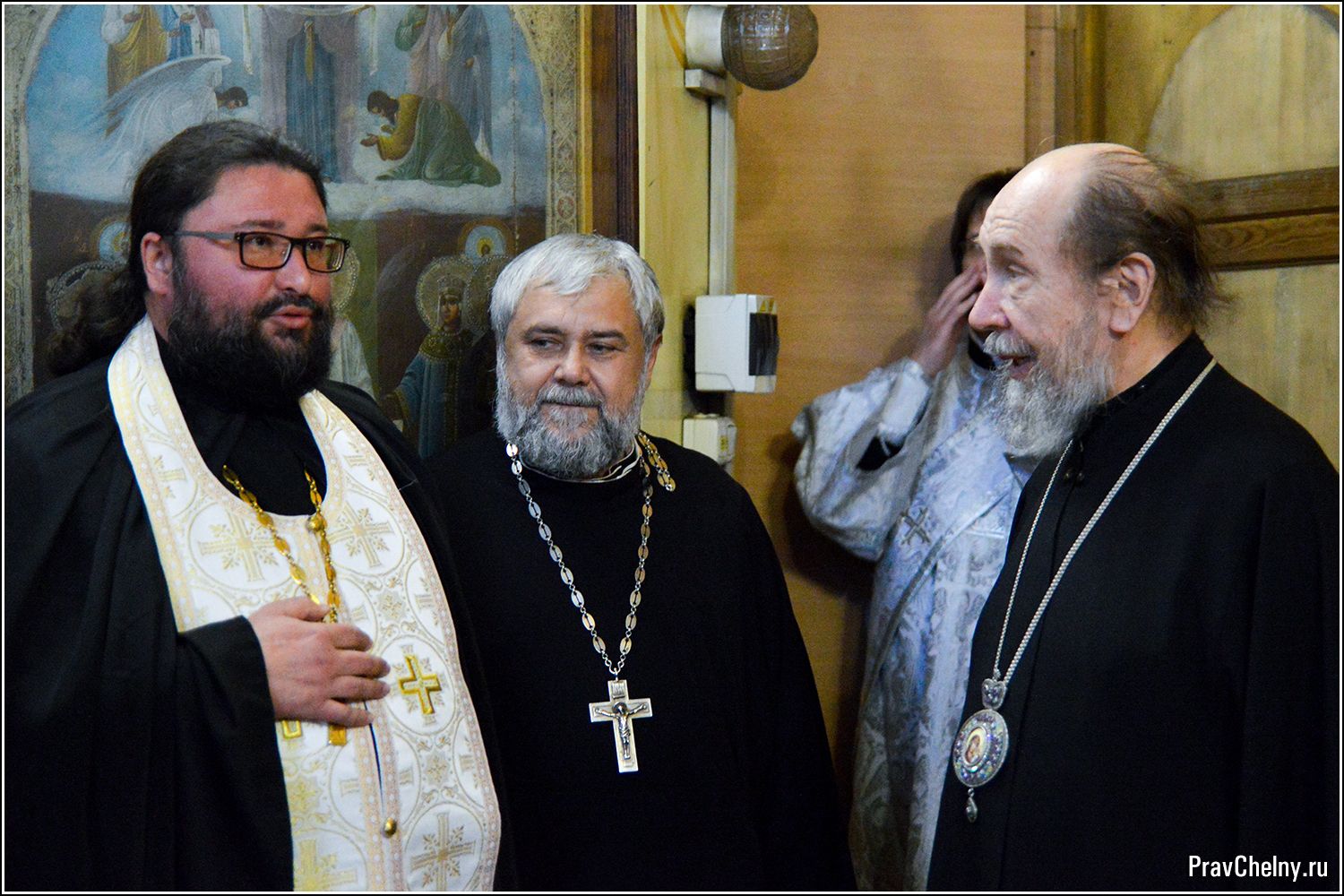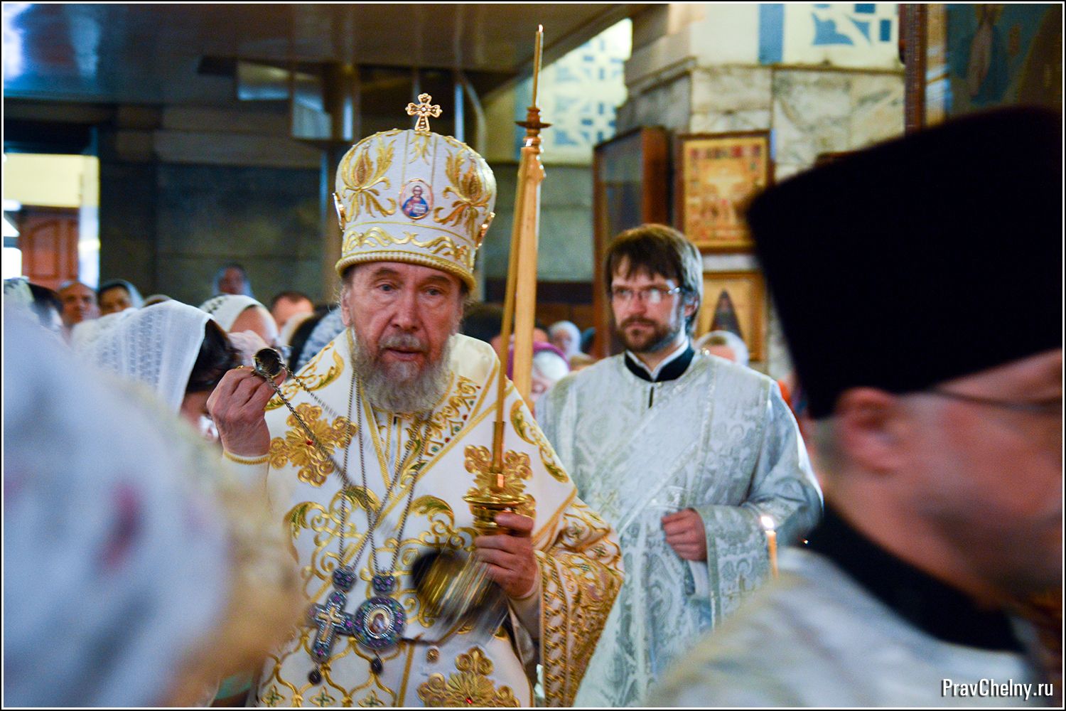 «Один из святых Церкви говорил, что епископ — это тот, кто объединяет вокруг себя всех верующих. Без епископа невозможно бытие Церкви в мире и поэтому приезд его всегда большая радость для людей, и символизирует полноту церковную, церковное единство всех приходов, которые входят в состав той или иной епархии. Богослужение в приезд правящего архиерея отличается особенной торжественностью молитвословий, люди молятся вместе со своим архипастырем, а он, молится вместе со своей паствой — тем самым достигается то, для чего Церковь и создана — единство, единство устремлений людей к своему Господу», — сказал секретарь архиерейского совета Татарстанской митрополии иеромонах Филарет (Кузьмин), также прибывший в Челны на престольный праздник собора.