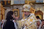 Владыке Анастасию сослужили благочинный Закамского региона протоиерей Андрей Дубровин, наместник Казанско-Богородицкого монастыря г. Казани игумен Марк (Виленский), настоятели храмов и духовенство епархии.