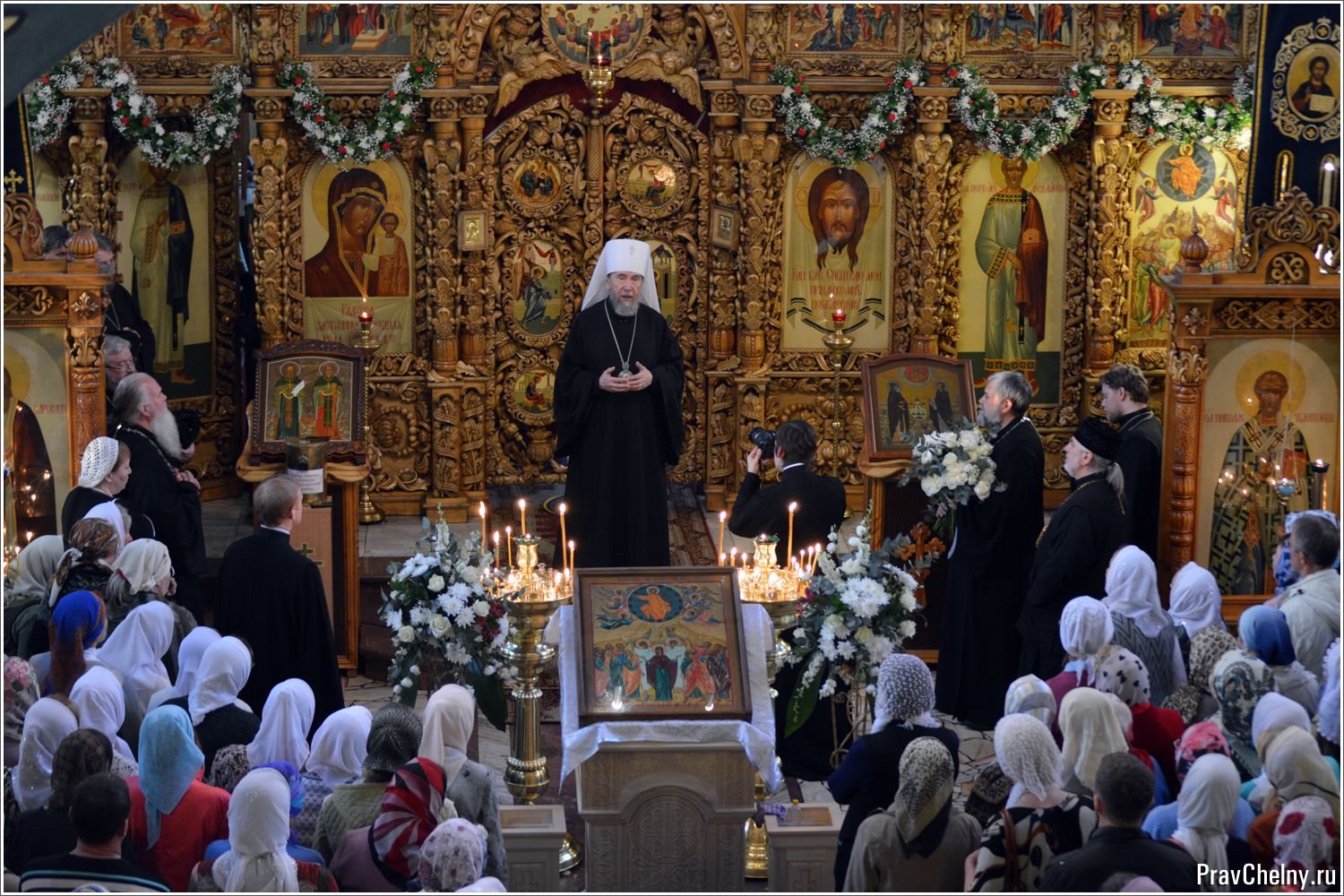 «Мы с вами, православные христиане, стяжали эту благодать Святого Духа в Таинстве Крещения, в таинствах нашей Святой Церкви, и мы не одиноки в этом мире — Господь всегда с нами, если мы доверяем себя целиком и полностью Его руководству, Его водительству по этой многомятежной и многострадальной нашей жизни. Скорби, несчастья и беды обуревают нас, но если мы доверяем Господу, если мы чувствуем, что Он с нами во все дни до скончания века, то мы должны чувствовать присутствие Господа в нашей жизни, чувствовать, что Он — Господь и руководитель наш, чувствовать, что Он всегда поможет нам выстоять в этом мире, наполненном соблазном греха, наполненном всеми возможными искушениями этого мира. И Господь помогает тем, кто вверяет себя полностью руководству нашего Господа. И дай Бог, чтобы этот тихий радостный вечер был благодатным для каждого из нас, чтобы Господь сказал каждому из нас: «Я с тобой, до скончания твоего земного странствия и жду тебя в той, иной жизни». Вот в этом заключается смысл нашего земного бытия, смысл нашей земной жизни, чтобы чувствовать Господа».