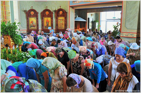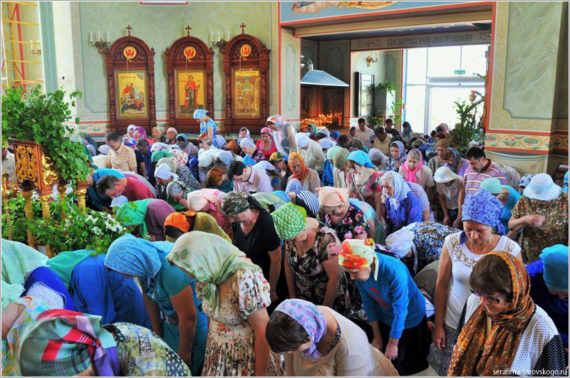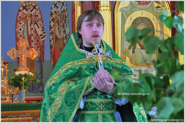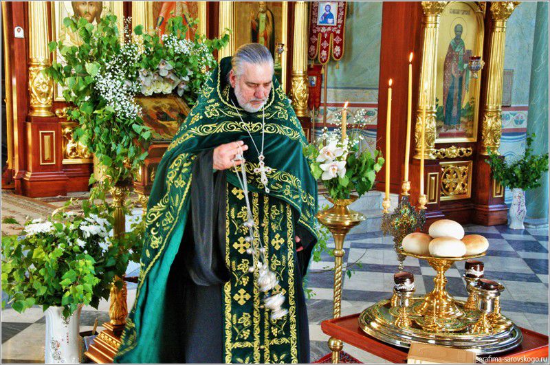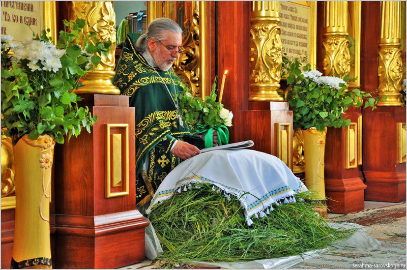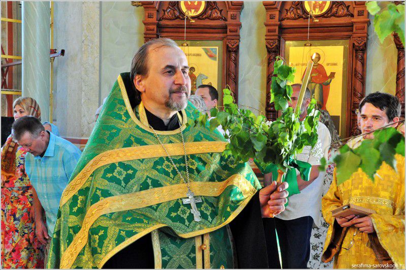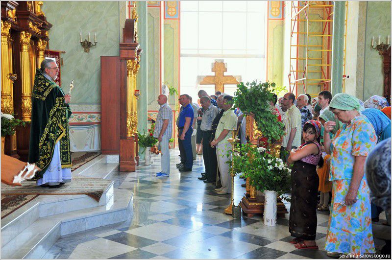 Храм в честь преподобного Серафима Саровского в этот праздничный день был заполнен благоуханием полевых цветов и трав, старательно украшен веточками березы, напоминая православным о красоте и неповторимости Божьего мира.