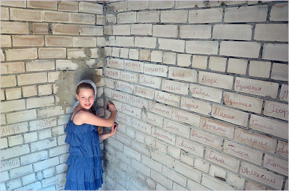 Ребята молодежной группы «Сознание» и преподаватели воскресной школы «Звездочка» приняли участие в составлении «именных кирпичиков». С каждым новым рядом кладки имена благотворителей, нанесенные на кирпичики, становятся частью будущего храма — места где Церковь земная соединяется в незримом и таинственном общении со Христом, участвует в жизни будущего века.