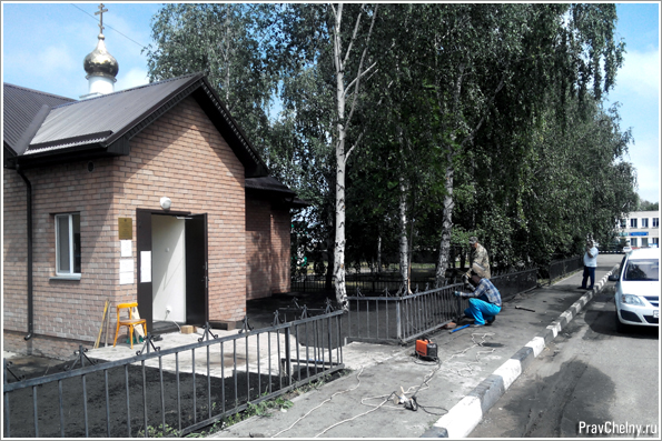 Для того, чтобы храм был красив как изнутри, так и снаружи были привезены несколько машин чернозема, который ровным слоем покрыл прихрамовую территорию, и посеяна газонная трава. Теперь, после сильного дождя, зеленый газон украсит небольшой храм-часовню. Также, вокруг храма была приведена в порядок железная ограда.