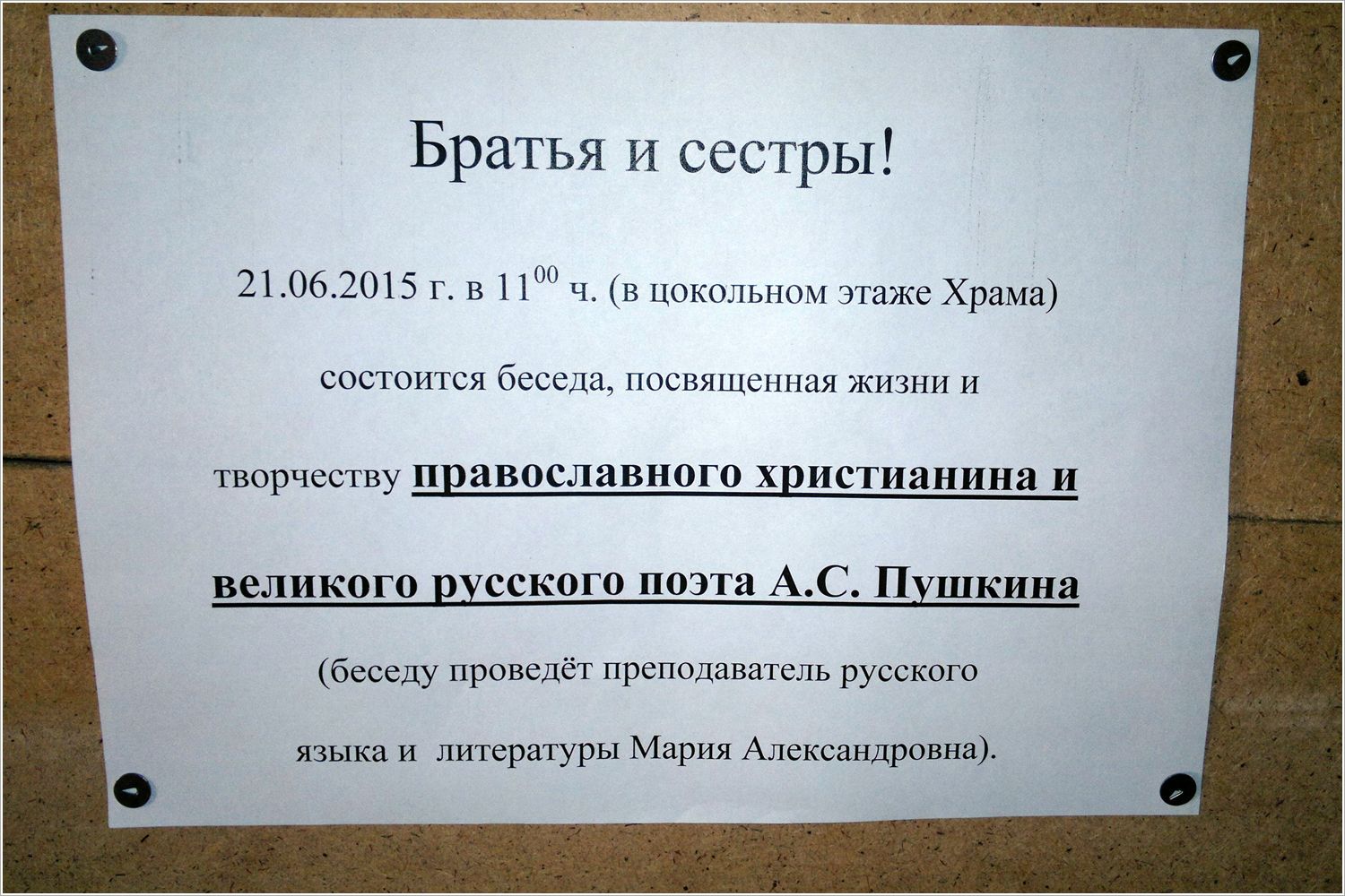 21 июня в помещении воскресной школы состоялась встреча, посвящена творечесту православного христианин и великого поэта Александра Сергеевича Пушкина. 28 июня в школе смотрели фильм, посвященный алкогольной угрозе. Итогом встреч стало решение о продолжении деятельности школы в летний период.