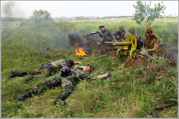 Реконструкция проходила недалеко от одной из деревень Нижнекамского района. Согласно сценарию, группа немецких солдат должна была штурмом взять высоту на берегу реки, где окопались несколько уцелевших бойцов Красной Армии. Немецкие атаки захлебывались под огнем пулеметов «Максим» и винтовок «Мосина».