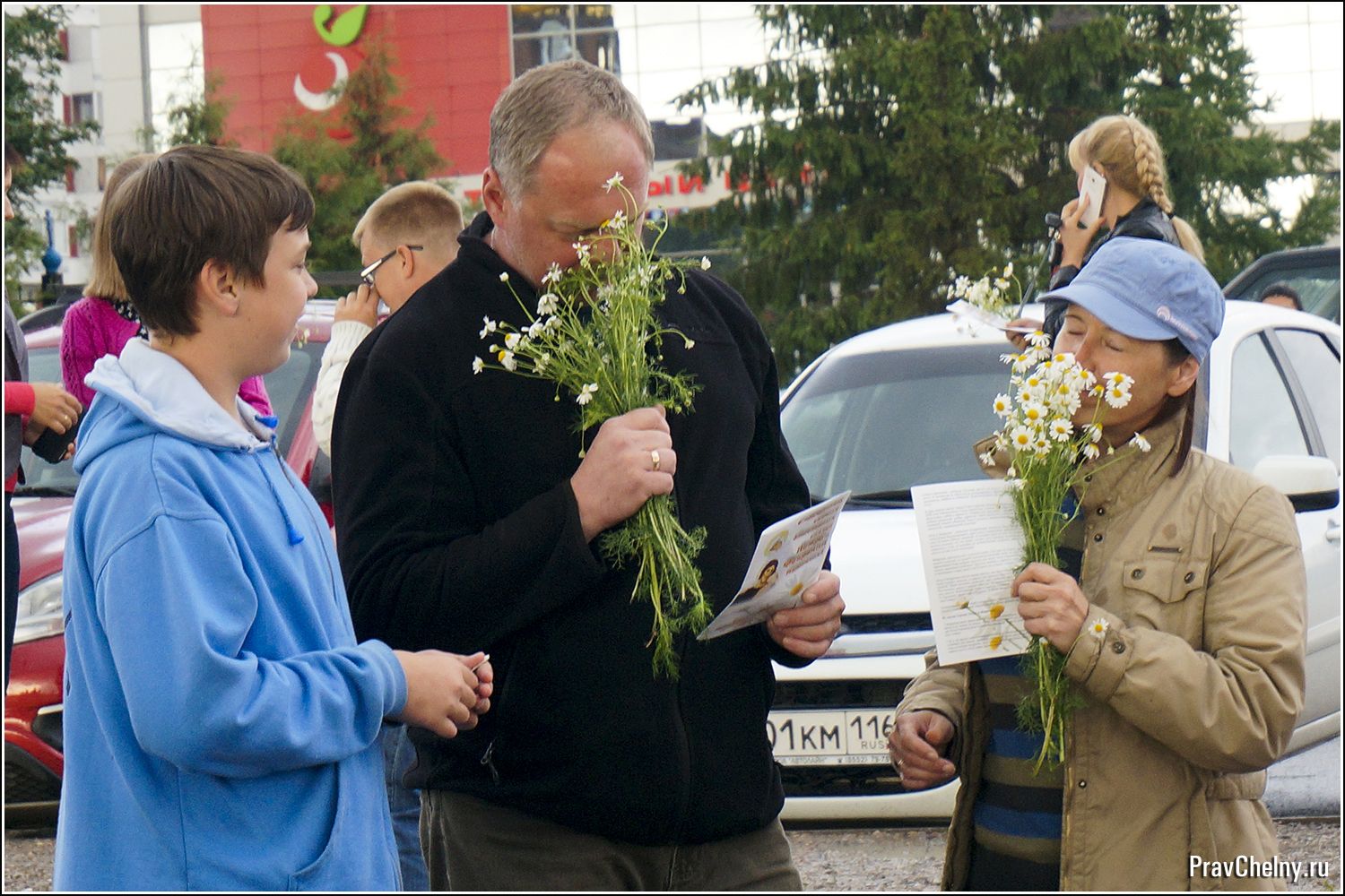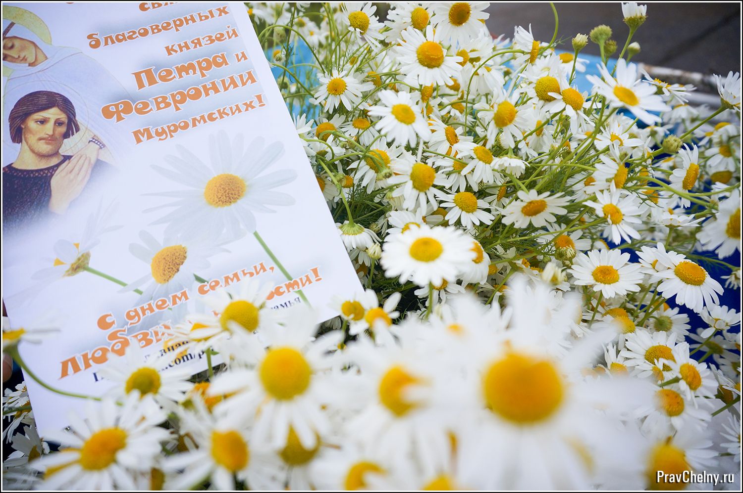 Вечером на роднике возле Свято-Вознесенского собора состоялся концерт в честь праздника, организованный Набережночелнинским русским обществом, во время которого православная молодежь Закамья раздавала собранные ромашки и заранее подготовленные совместно с миссионерским отделом листовки.