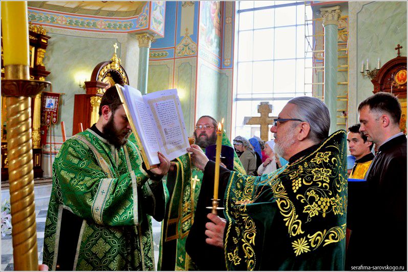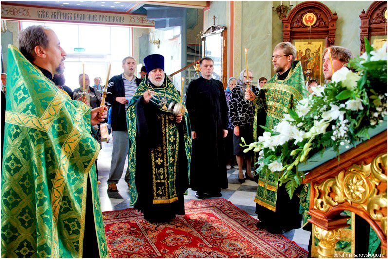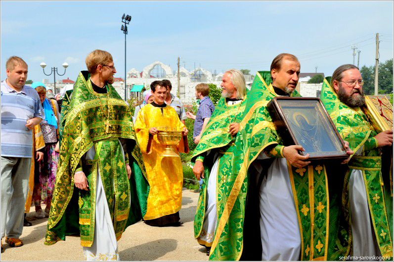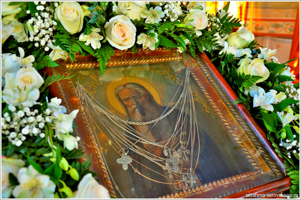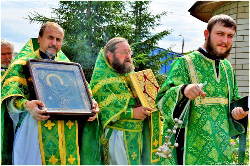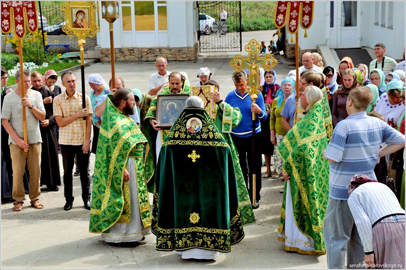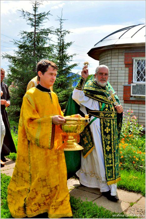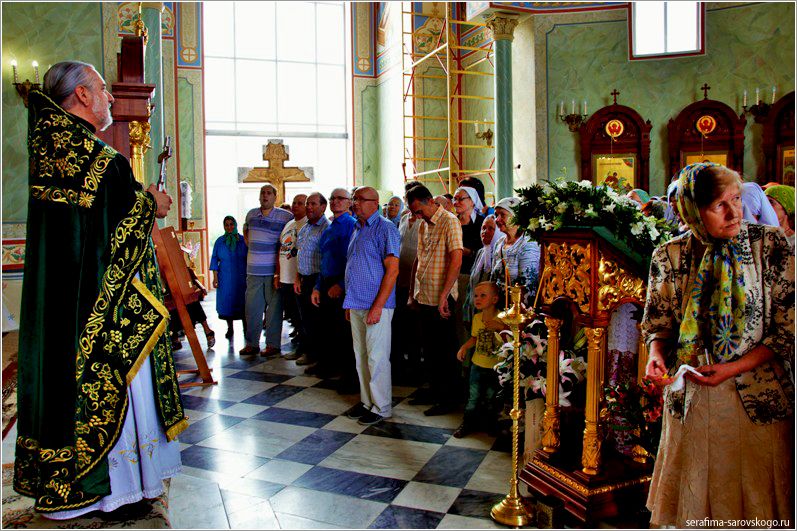 «Дорогие братья и сестры! «Христос воскресе!» — с той радостью, которую явил нам Иисус Христос и святой Серафим Саровский, хотелось бы поприветствовать вас, ведь сегодня тот день, когда среди лета запоют Пасху, как говорил старец, — день прославления преподобного Серафима Саровского. Этими простыми, но вместе с тем, внутренне сильными словами, преподобный призывает нас возвратиться к жизни по Евангельским заповедям, жизни, исполненной немеркнущей пасхальной радости. «Радость моя!» — в этом, исполненном кротости и любви приветствии, — духовное завещание преподобного Серафима всем чадам Православной Церкви. Живите по его заповеди: «Стяжите дух мирен и тысячи вокруг вас спасутся». Горение должно быть в каждом из нас и тогда возле нас будут и мир, и счастье, и любовь. От всего сердца желаю вам всем здравия, душевного и телесного, благополучия, радости, а самое главное, помощи Божией по молитвам Божиего угодника преподобного Серафима Саровского! С праздником!», — закончил свою проповедь настоятель тезоименитого храма.
