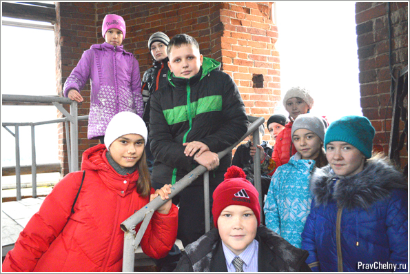 Вершиной экскурсии стал подъем на колокольню. Крутые лестницы, необычная архитектура и простор, открывшийся с высоты колокольни, поразил детей. Звонарь собора Дмитрий Русин рассказал о колокольном звоне и дал возможность детям позвонить в колокола.