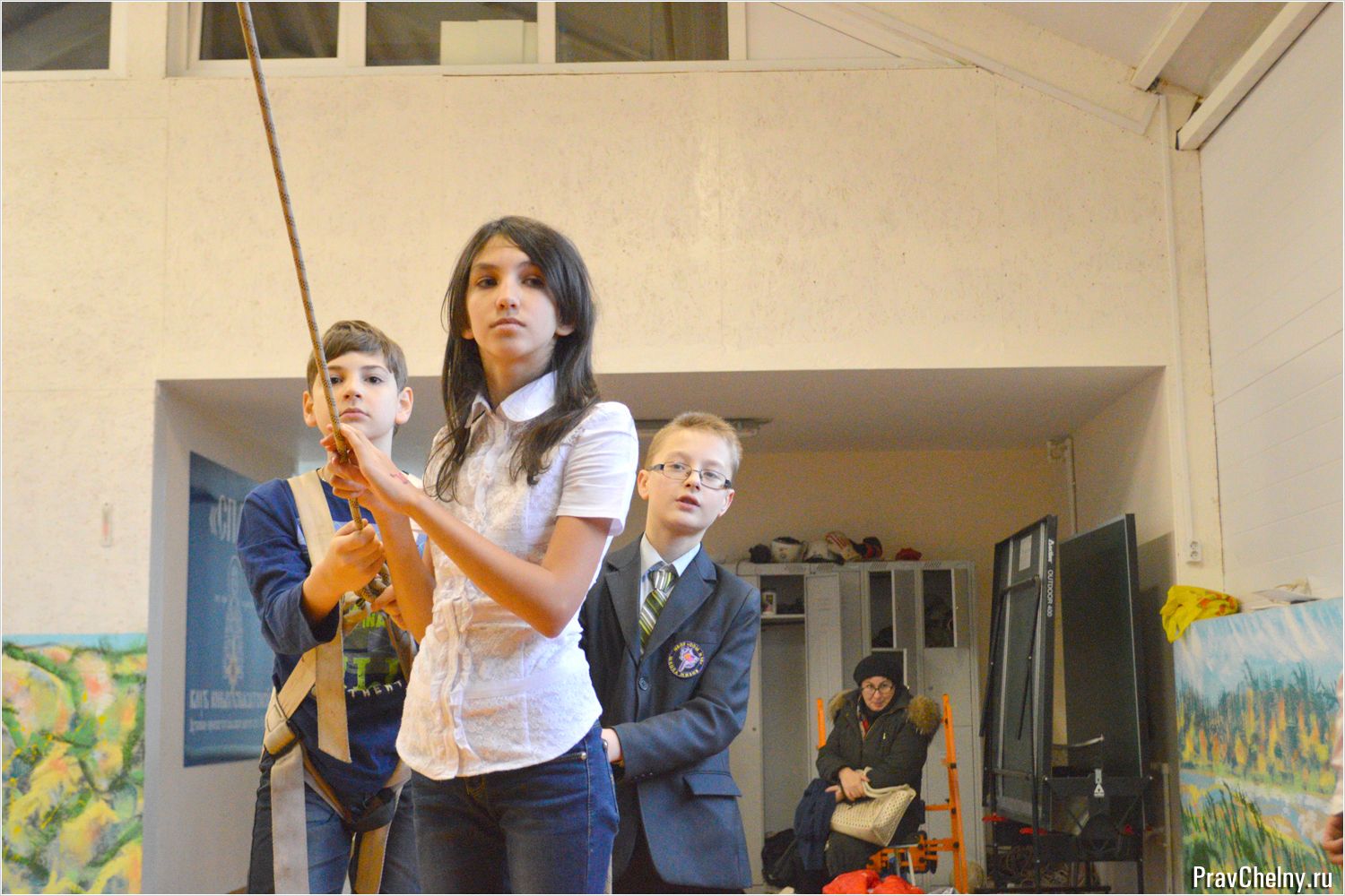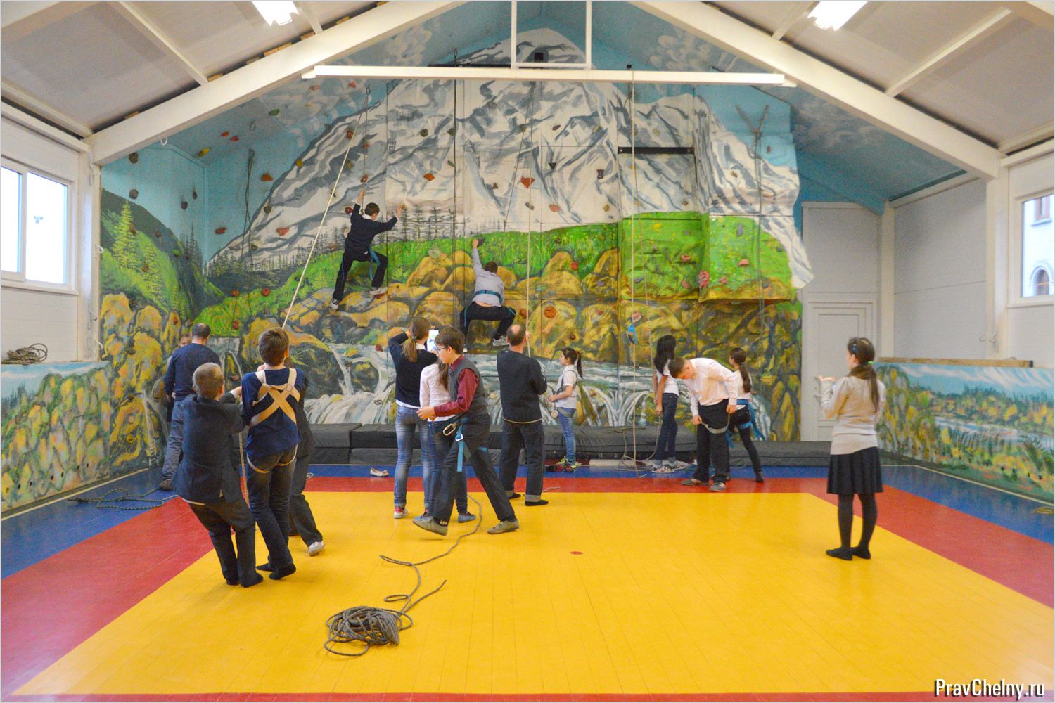 Затем дети пришли в спортзал Клуба, где могли поиграть в подвижные игры и полазить на скалодроме.