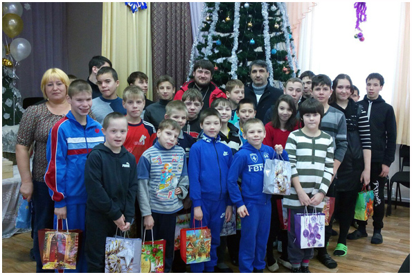 В Рождественский сочельник настоятель Никольского собора г. Мензелинска иерей Роман Храмутичев и владелец ресторана ODZUN Геворг Костандян, представитель армянской диаспоры города, посетили дом-интернат и подарили детям подарки.
