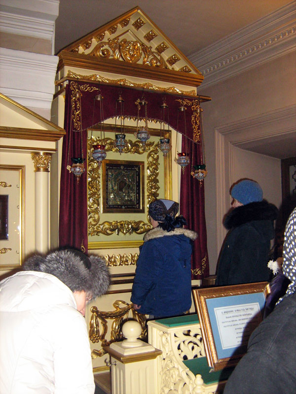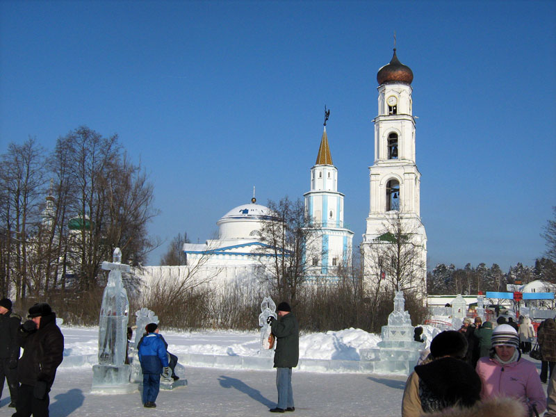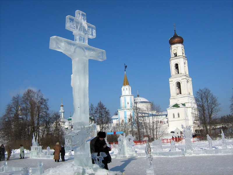 На следующий день, после утреннего правила и Божественной литургии, посетили собор Грузинской иконы Божией Матери, на экскурсии узнали историю этого храма и чудотворной иконы. После катались с горки, любовались ледяными фигурами.