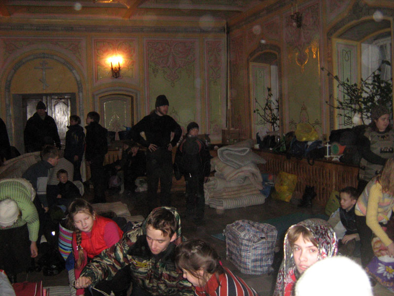 Программа первого дня получилась насыщенной, поэтому в Раифский монастырь паломники прибыли с опозданием – не успели на ужин. Но это никого особенно не огорчило, потому что дорожных запасов хватило всем, и даже еще осталось. После благословения схимонаха вся группа отправилась на вечернее правило в Троицкий собор. Несмотря на переизбыток впечатлений, дети вели себя достойно и, умиротворенные вечерней молитвой в тишине и полумраке храма, отправились ночевать в храм святых отцов в Синае и Раифе избиенных.