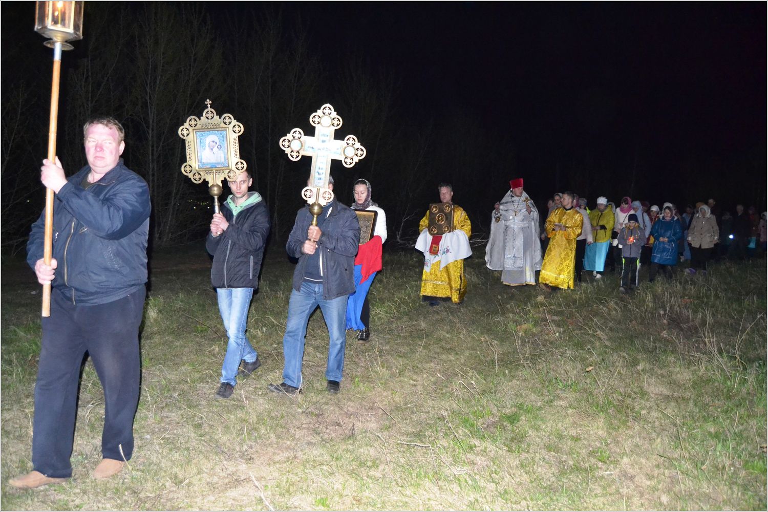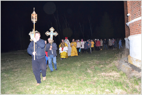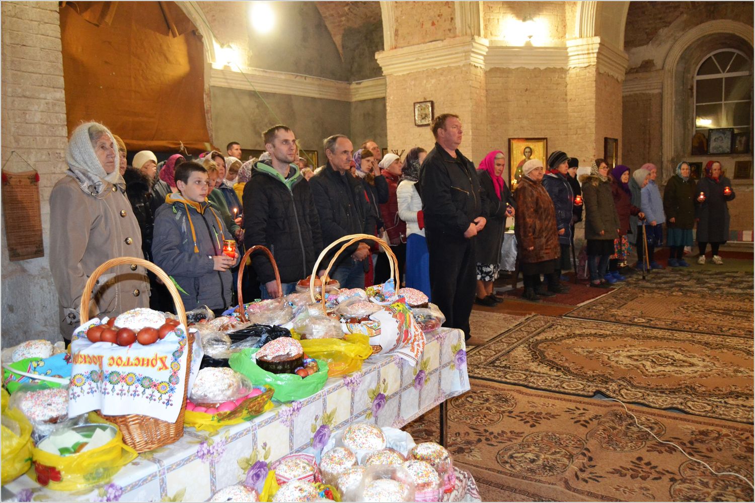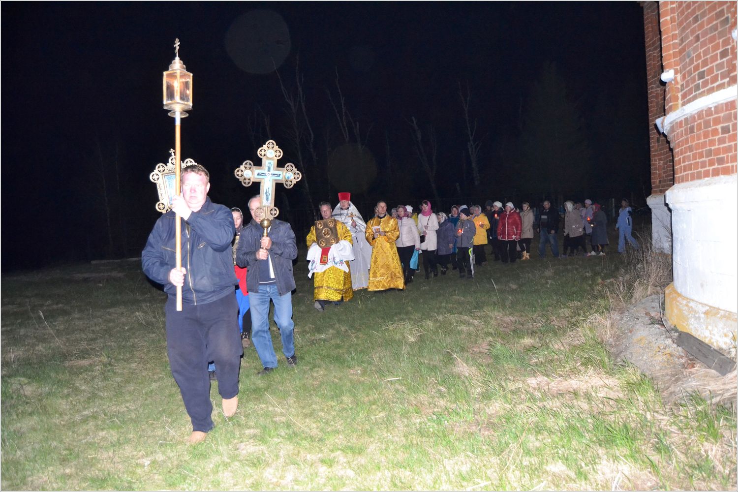 После Крестного хода двери храма открылись — Христос Воскрес и Пасха наступила. Клирик храма святых бессребреников Космы и Дамиана города Набережные Челны иерей Дмитрий Веретнов, возглавивший ночную службу, поздравил всех верующих с великим праздником Пасхи. Затем началось праздничное богослужение, которое продлилось еще несколько часов. Вместе со священником приехал двое алтарников и певчие. Церковное пение в храме никого не оставило равнодушным. Как сказал святитель Иоанн Златоуст: «Ничто так не возвышает и не окрыляет душу, не отрешает ее от земли, не избавляет от уз тела, не располагает любомудрствовать и презирать все житейское, как согласное пение и стройно составленная божественная песнь».