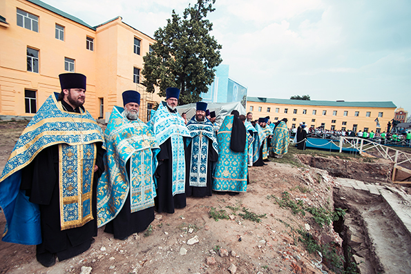 Священнослужители Закамья во главе с благочинным протоиереем Андреем Дубровиным приняли участие в совместной молитве с Патриархом Кириллом, крестном ходе и присутствовали при историческом событии — закладке Казанского собора.