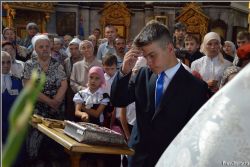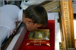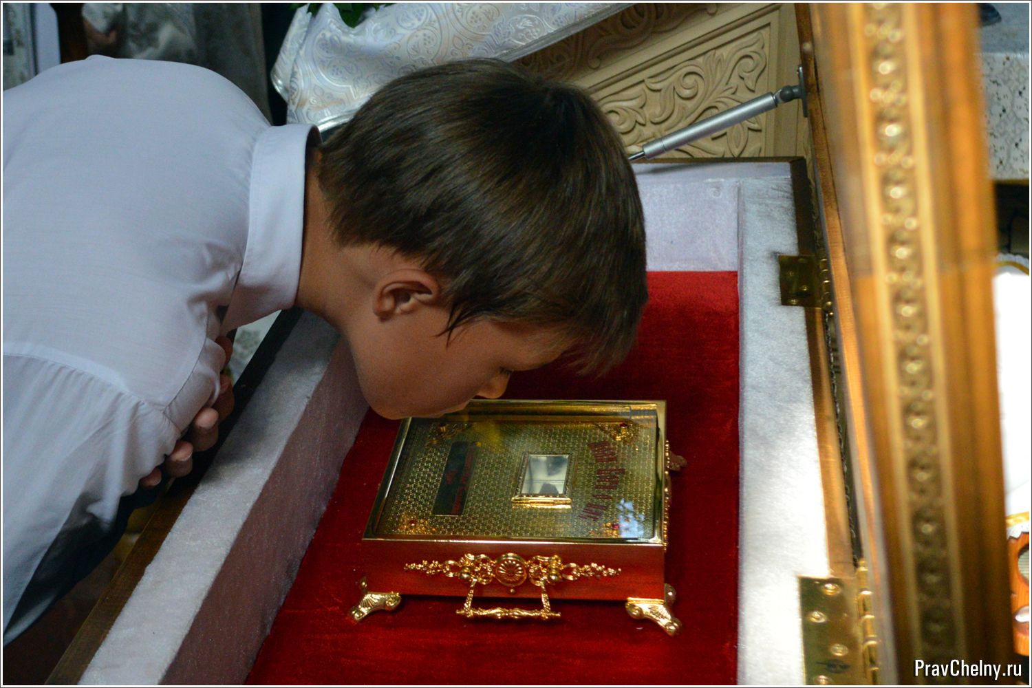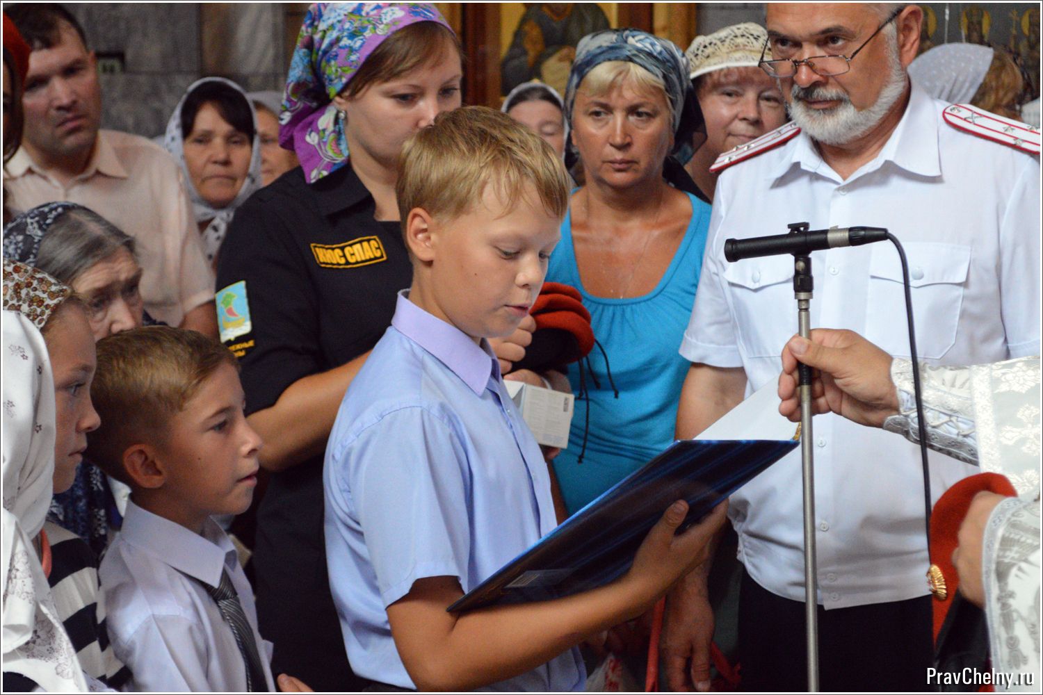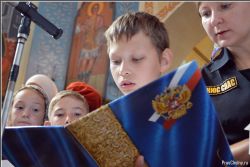 Присяга и награждение проходили в особенно торжественной обстановке: на середину храма для этого были вынесены Крест, Евангелие и ковчег с частицей мощей святителя Гурия Казанского — святыни, перед которыми ребята и давали честное слово быть верными делу Клуба, ведь именно духовная составляющая отличает воспитание юных спасателей.