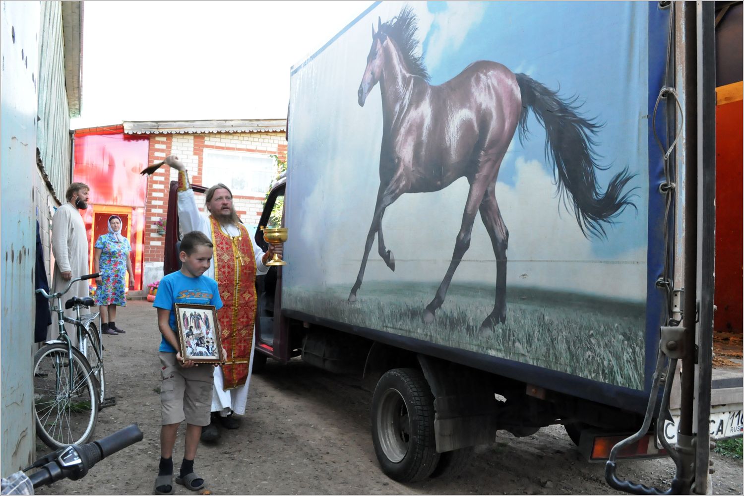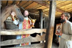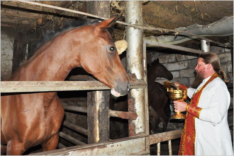 А во второй половине дня священнослужители Богоявленского храма Менделеевска навестили известного в округе любителя лошадей Виктора Леонтьева. Он живет в д. Байтуганово Граховского района и всю жизнь занимается лошадьми, участвует в скачках, привил эту любовь детям и внукам. Сейчас в его хозяйстве около 15 скакунов.