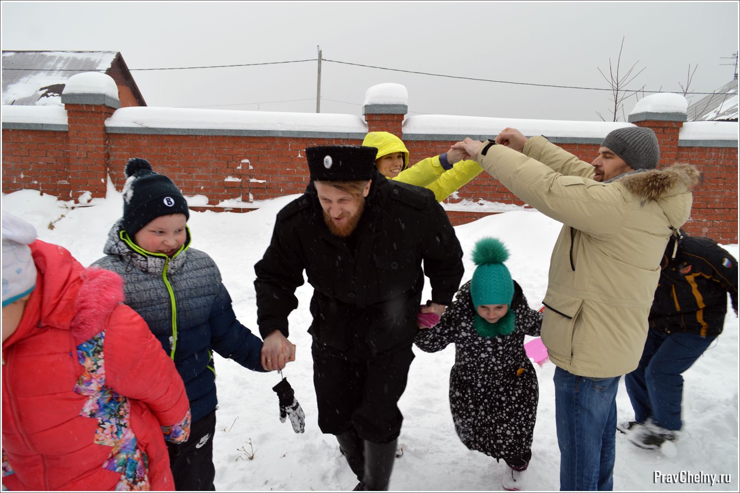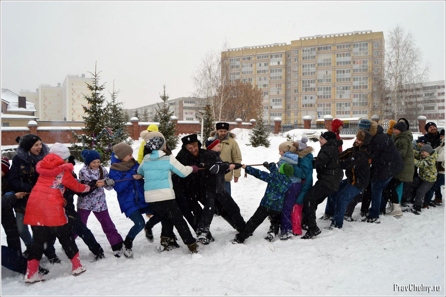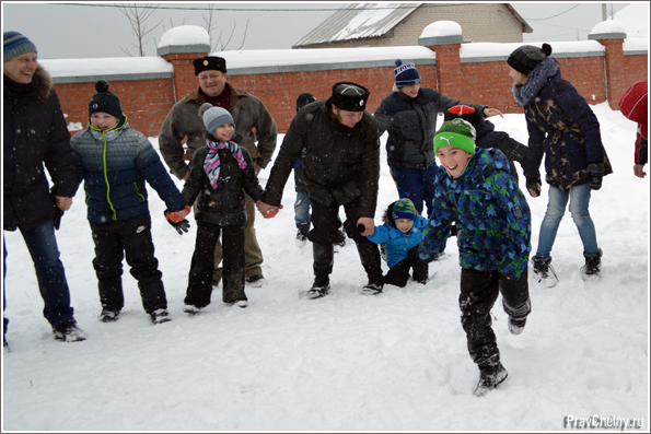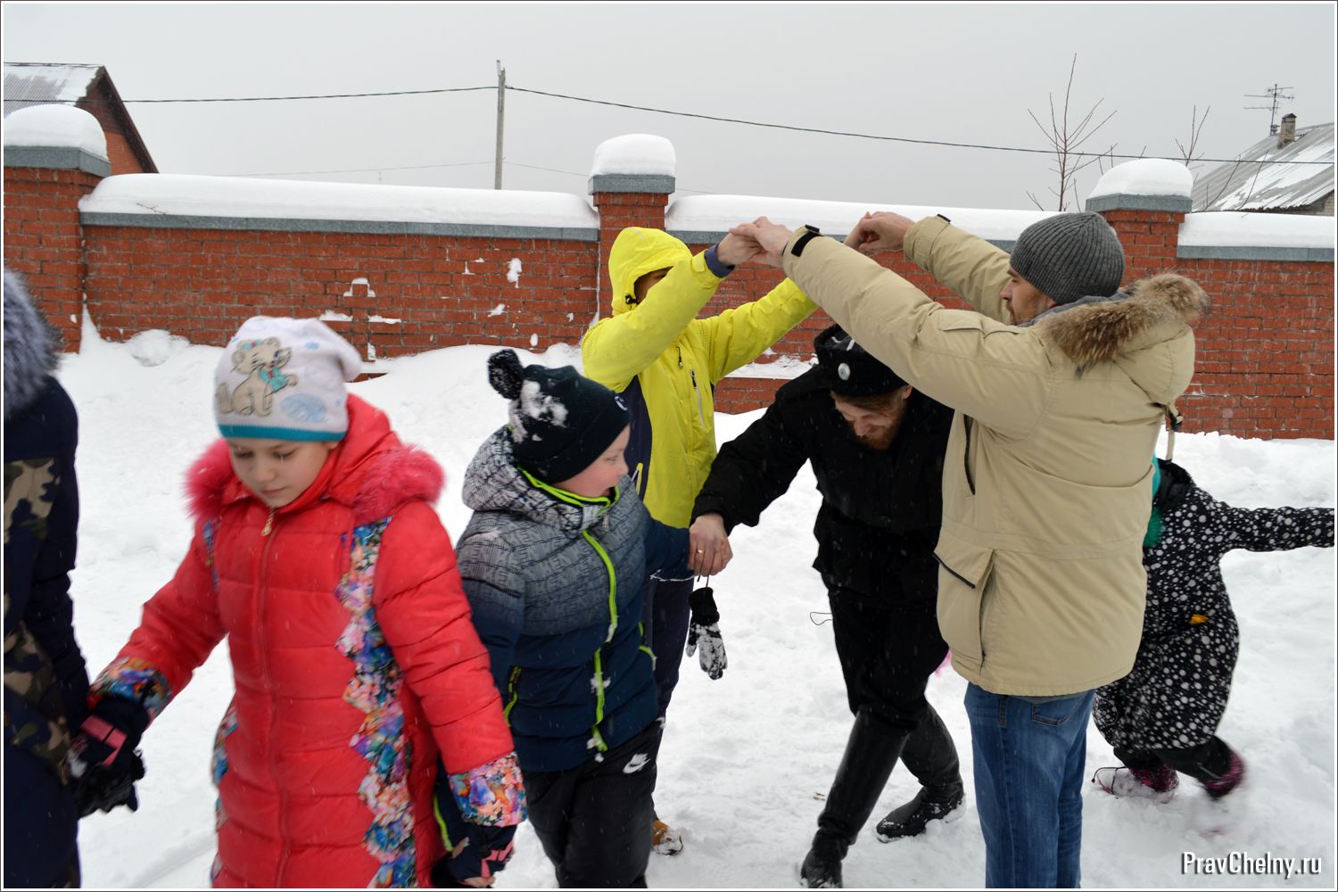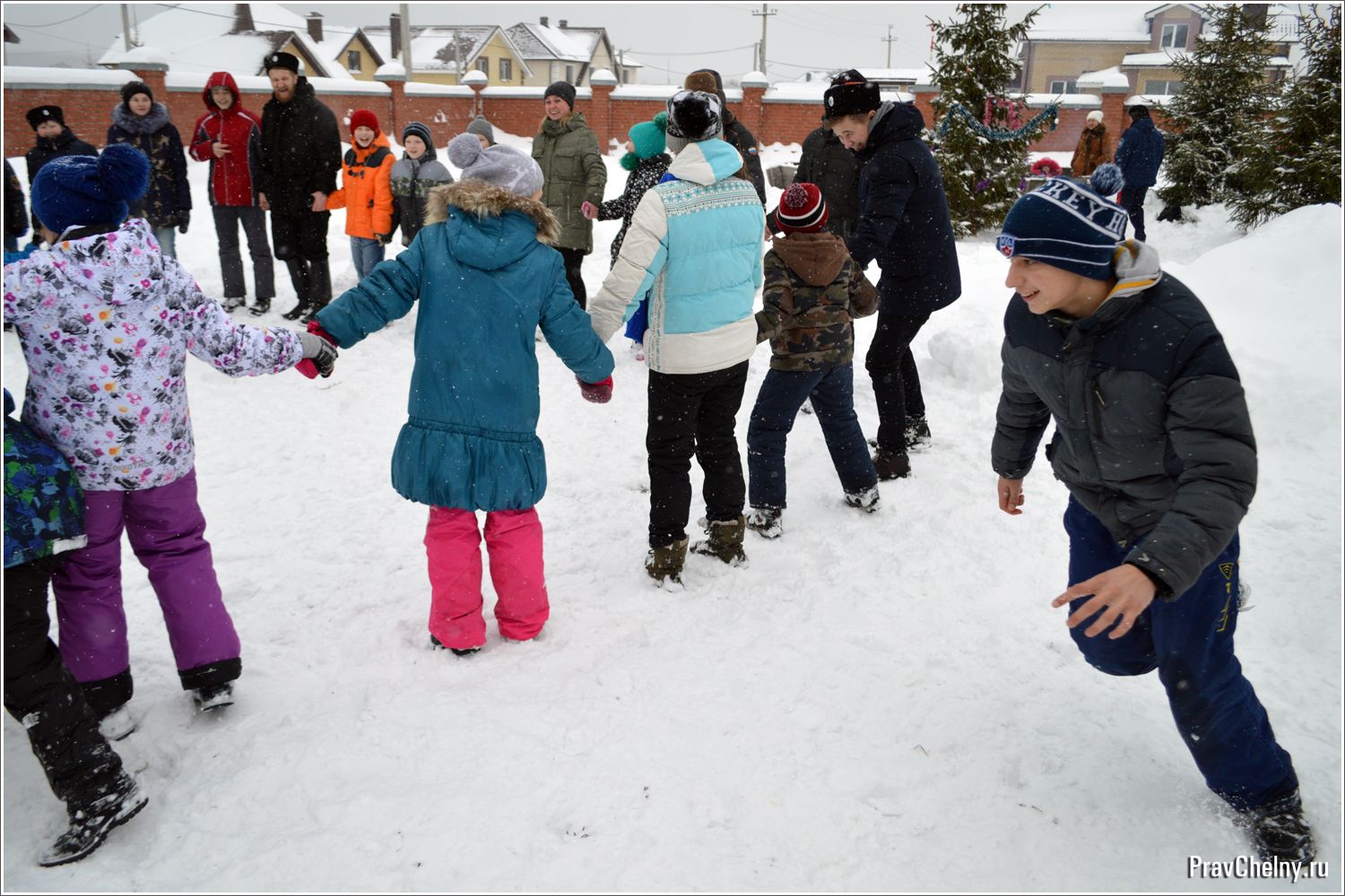Продолжился праздник уже на улице, на заднем дворе храма, где дети и их родители с радостью вспомнили всем давно знакомые добрые зимние забавы: самые разнообразные хороводные игры, перетягивание каната и многое-многое другое.