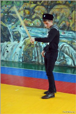 После ребят перед зрителями выступили казаки Боровецкого хутора, продемонстрировавшие собравшимся своё умение владеть шашками. К ним присоединились и некоторые воспитанники клуба «Спас», которых с недавнего времени казаки тоже обучают искусству фланкировки.