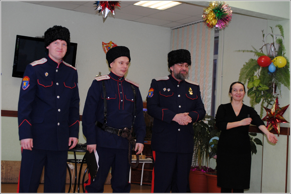 17 января в Набережночелнинском доме-интернате для престарелых и инвалидов выступил малым составом Закамский казачий хор. Казаки Боровецкого хутора, вместе со своим руководителем Натальей Гладышевой поздравили всех жильцов дома-интерната с прошедшим Рождеством Христовым и исполнили церковные, народные и казачьи песнопения.