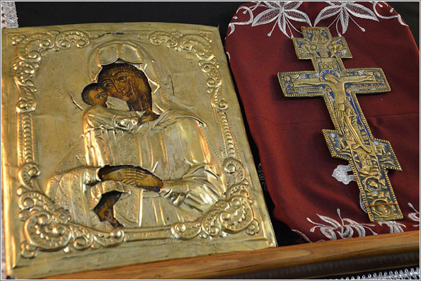 В завершение вечерни, настоятель обратился к молящимся со словом, напутствуя на прохождение подвигов Великого поста и преподал для лобзания Честной Крест.