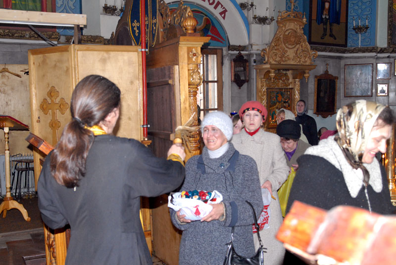 В нашей церкви, что уже стало традицией, собирают пасхальные угощения малоимущим, детям-сиротам и одиноким людям. Кто хочет, оставляет часть от принесенного на освящения в подарок нуждающимся.