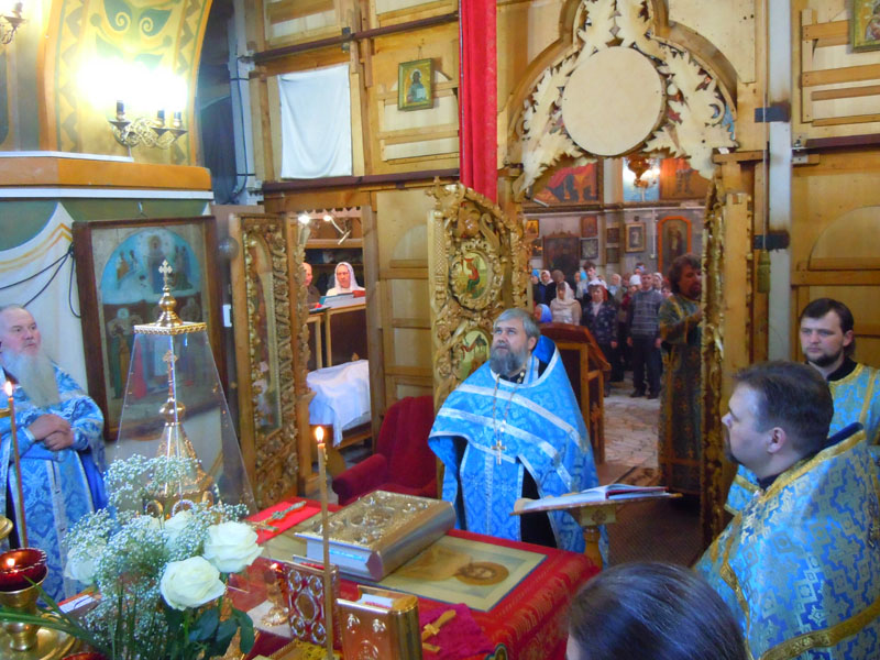 Протоиерей Андрей Дубровин обратился к прихожанам с проповедью, подчеркнув великое смирение и любовь к Богу Пресвятой Богородицы: «По кротости своей Мария мечтала быть хотя бы служанкой той, кого изберет Господь. Именно по смирению Господь избирает Марию». Отец Андрей обратил внимание и на то, что Господь так любит человека, что дает ему свободную волю выбора. От лица человечества Мария стояла перед выбором, и со смирением приняла волю Бога.