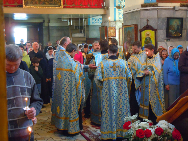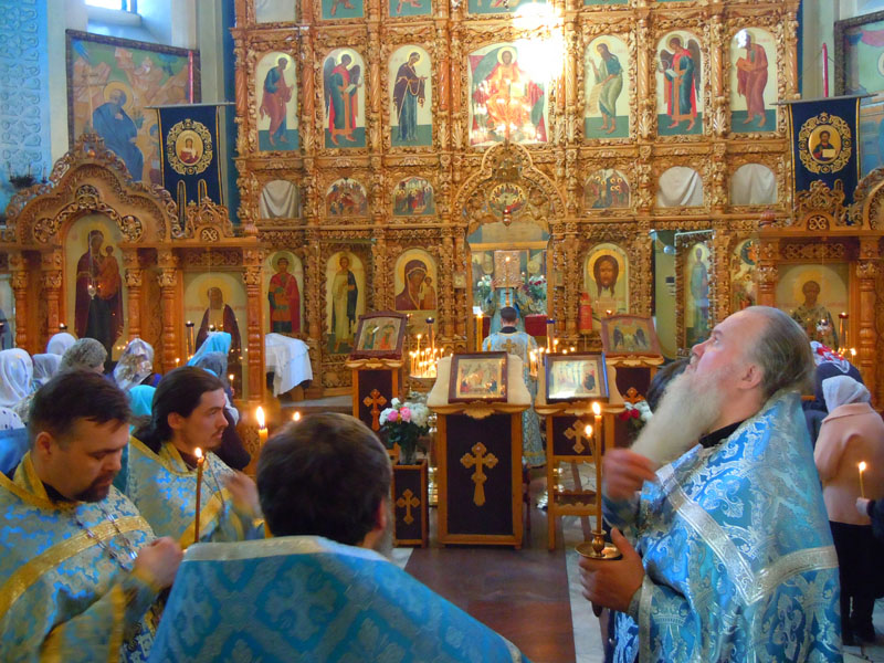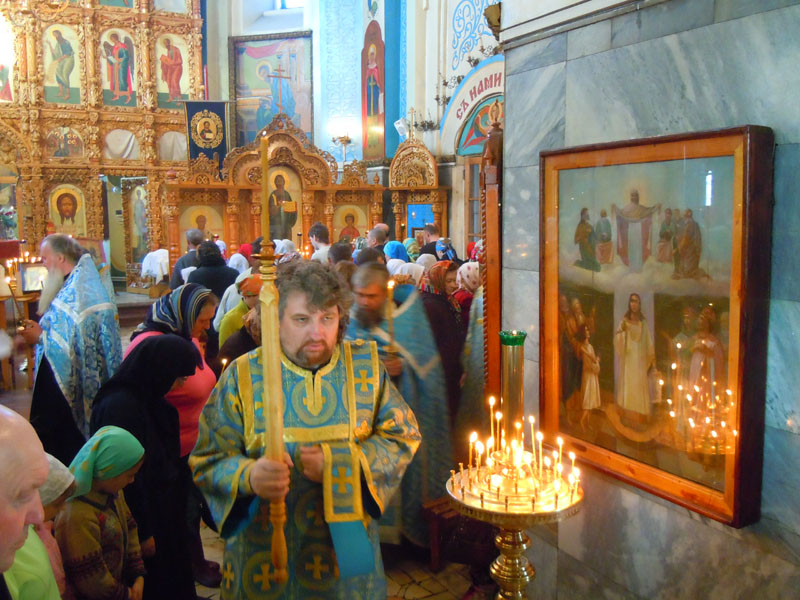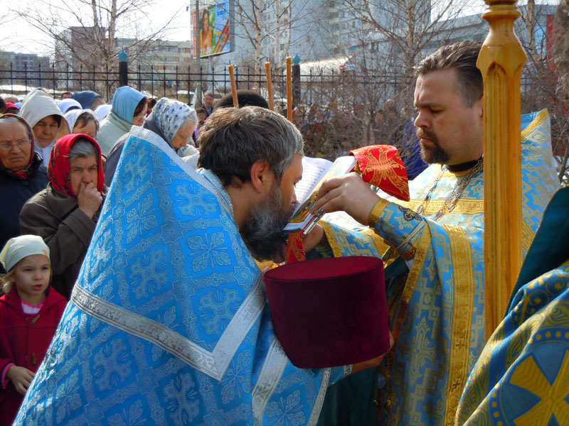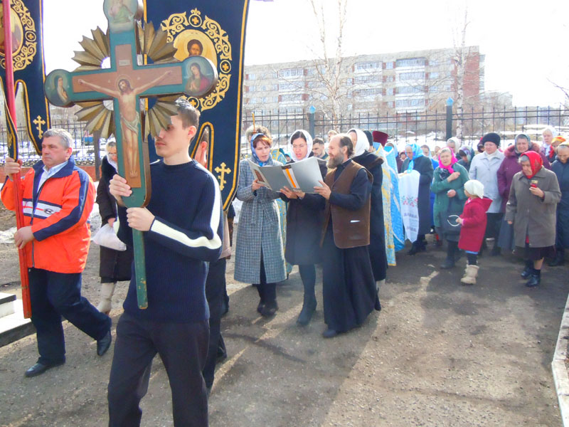 По окончании Литургии при непрерывном трезвоне колокольни с большим крестом, иконами и хоругвями был торжественно совершен крестный ход вокруг храма, знаменующий светлую христианскую радость. На Светлой седмице крестный ход проводится ежедневно после Литургии.