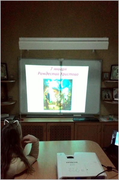 Детям были показаны слайды о праздниках декабря и проведена беседа о том, что такое пост.