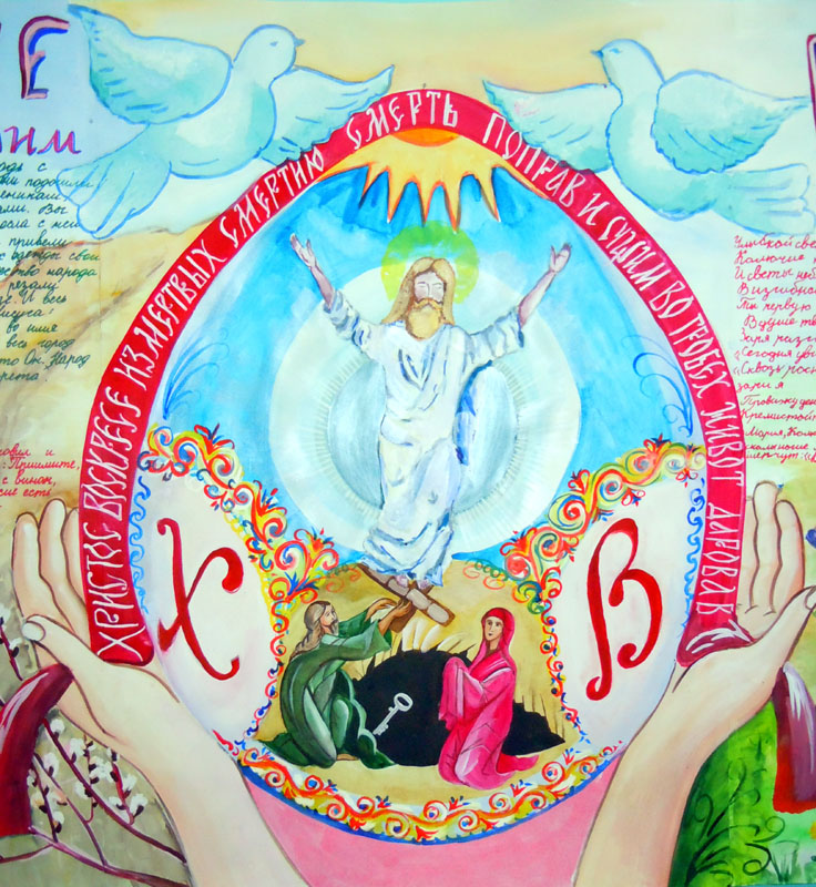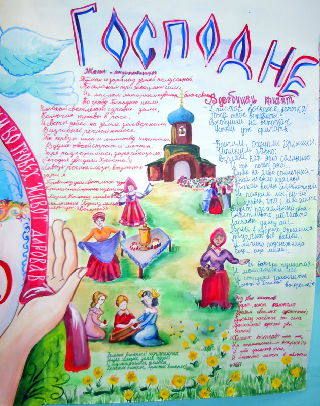 Трудами воспитанников детской воскресной школы при Свято-Вознесенском соборе ко Дню Святой Пасхи была изготовлена стенгазета: