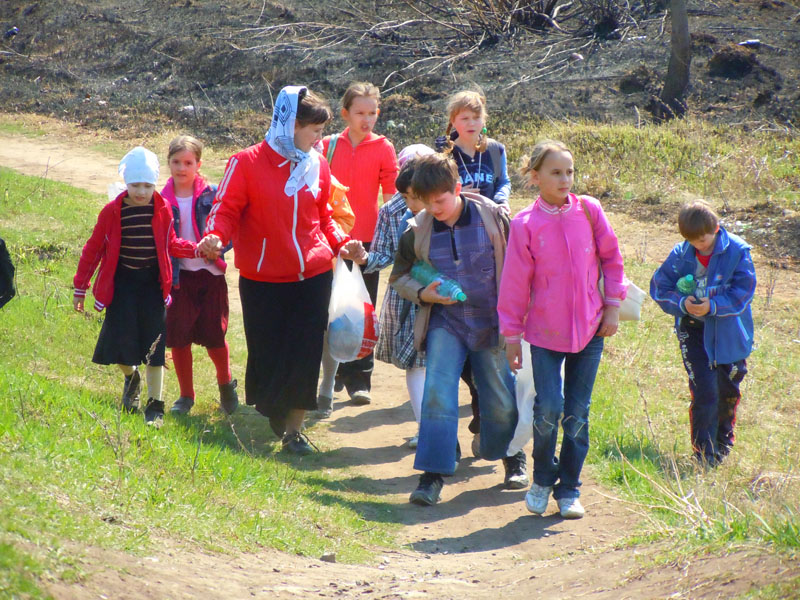 По окончании открытого урока, проведенного в актовом зале нового учебного корпуса Свято-Вознесенского архиерейского подворья, ребята смогли поиграть на свежем воздухе и сходить на прогулку в лес.