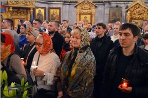 В Свято-Вознесенском соборе Челнов праздник начался с чтения Деяний святых апостолов и исповеди для тех, кто захотел причаститься за ночной Литургией. После Крестного хода со всенародным пением таких долгожданных и волнительных песнопений Пасхи в храме началась Божественная Литургия, которую возглавил благочинный Закамского региона протоиерей Андрей Дубровин. После чтения Евангелия благочинный по традиции поздравил всех словами святителя Иоанна Златоуста, в которых, как нельзя лучше, отражено ликование народа Божьего о чуде Воскресения Христова.