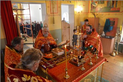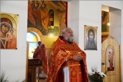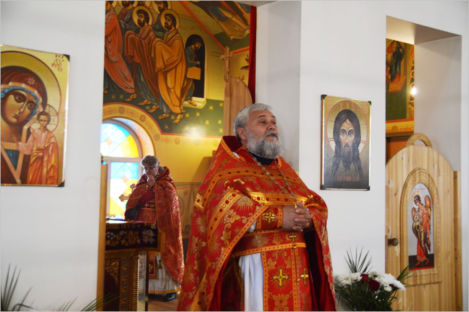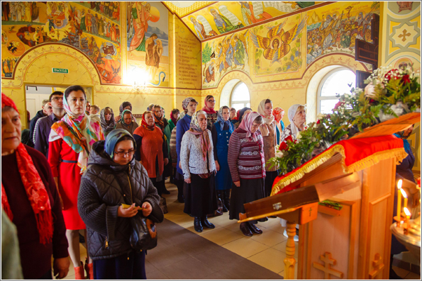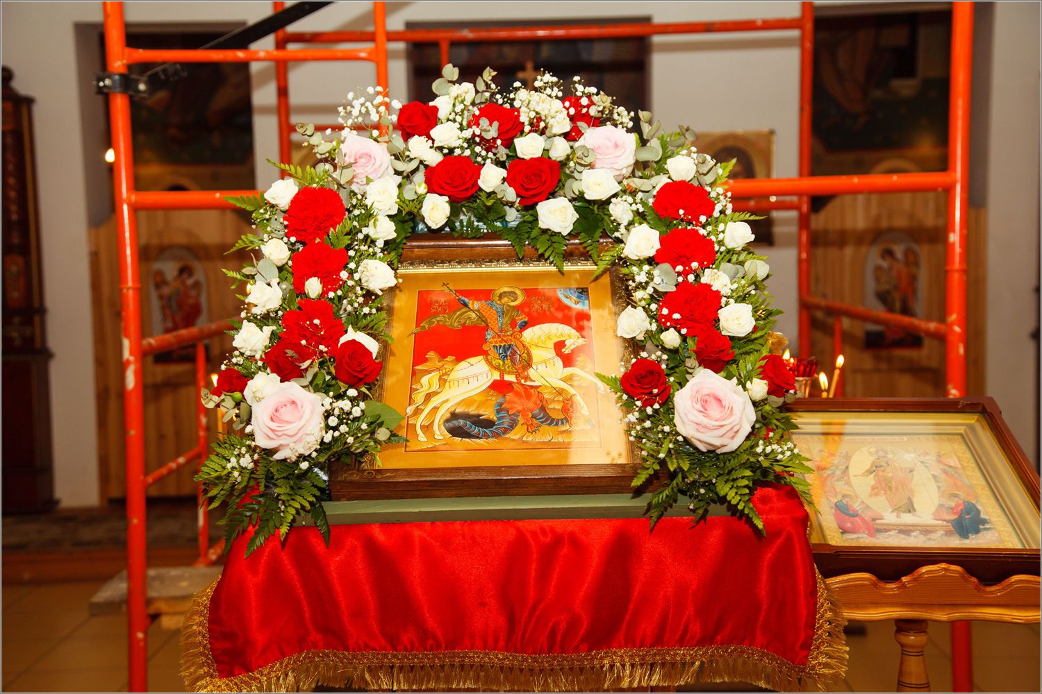 В этот день в 303 году при императоре Диоклетиане после восьмидневных пыток святому великомученику усекли главу. В этом году совпали день памяти св. Георгия и св. Фотины, той самарянки, которая разговаривала с Господом у колодца (Ин. 4, 5-42). По окончании чтения Евангелия благочинный обратился к верующим с проповедью: