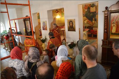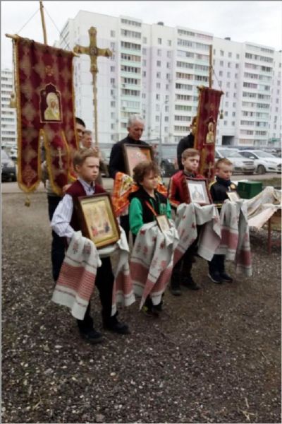 По окончании службы вокруг храма прошел крестный ход. Затем всех прихожан пригласили на свежий воздух, где трапезная развернула «военно-полевую кухню». Всем предлагалось угоститься горячей кашей с тушенкой, компотом и сладостями.