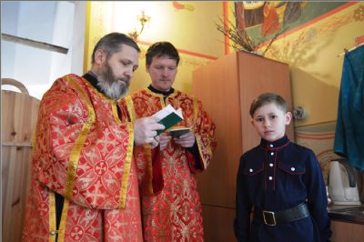 «Это особый день для прихода. Георгий Победоносец — это символ не только вашего прихода, это символ и Церкви нашей Православной. Это символ страны нашей Российской. Мы видим изображение Георгия Победоносца на гербе нашей страны, и вам, во всей полноте пободает быть подобными Георгию Победоносцу, ведь мы с вами воины, воины Христовы», — сказал священник.