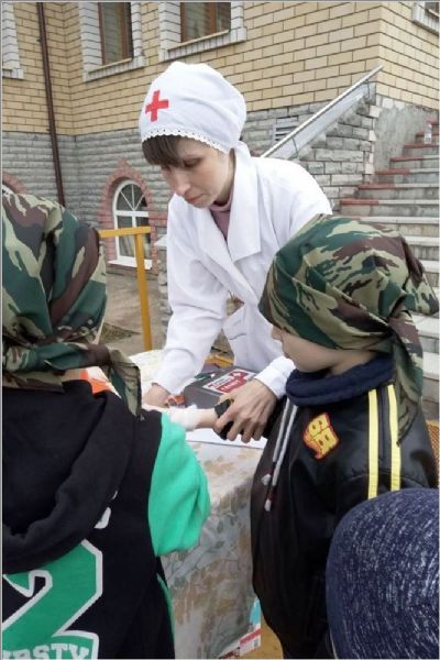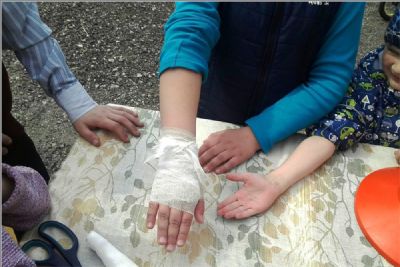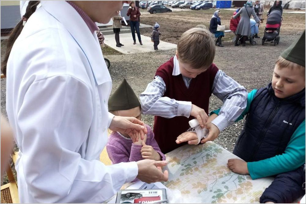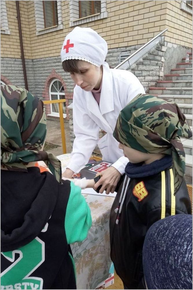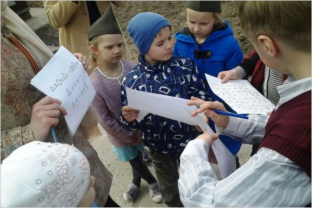 Военно-патриотической игрой отметили день памяти святого Георгия дети и взрослые из воскресной школы. Ребята решали боевые задачи (перевязка раненого, обезвреживание мин, завязывание морского узла, расшифровка закодированного текста и другие) и успешно с ними справились.
